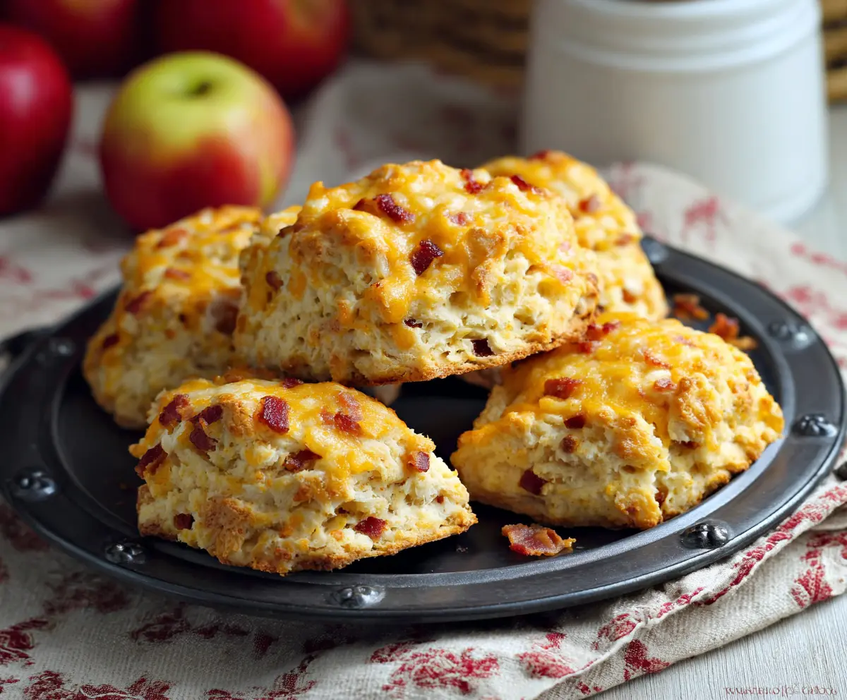 These apple cheddar bacon scones are the perfect mix of sweet and savory! With bits of crispy bacon and sharp cheddar cheese blended with fresh apple chunks, every bite is a tasty surprise.