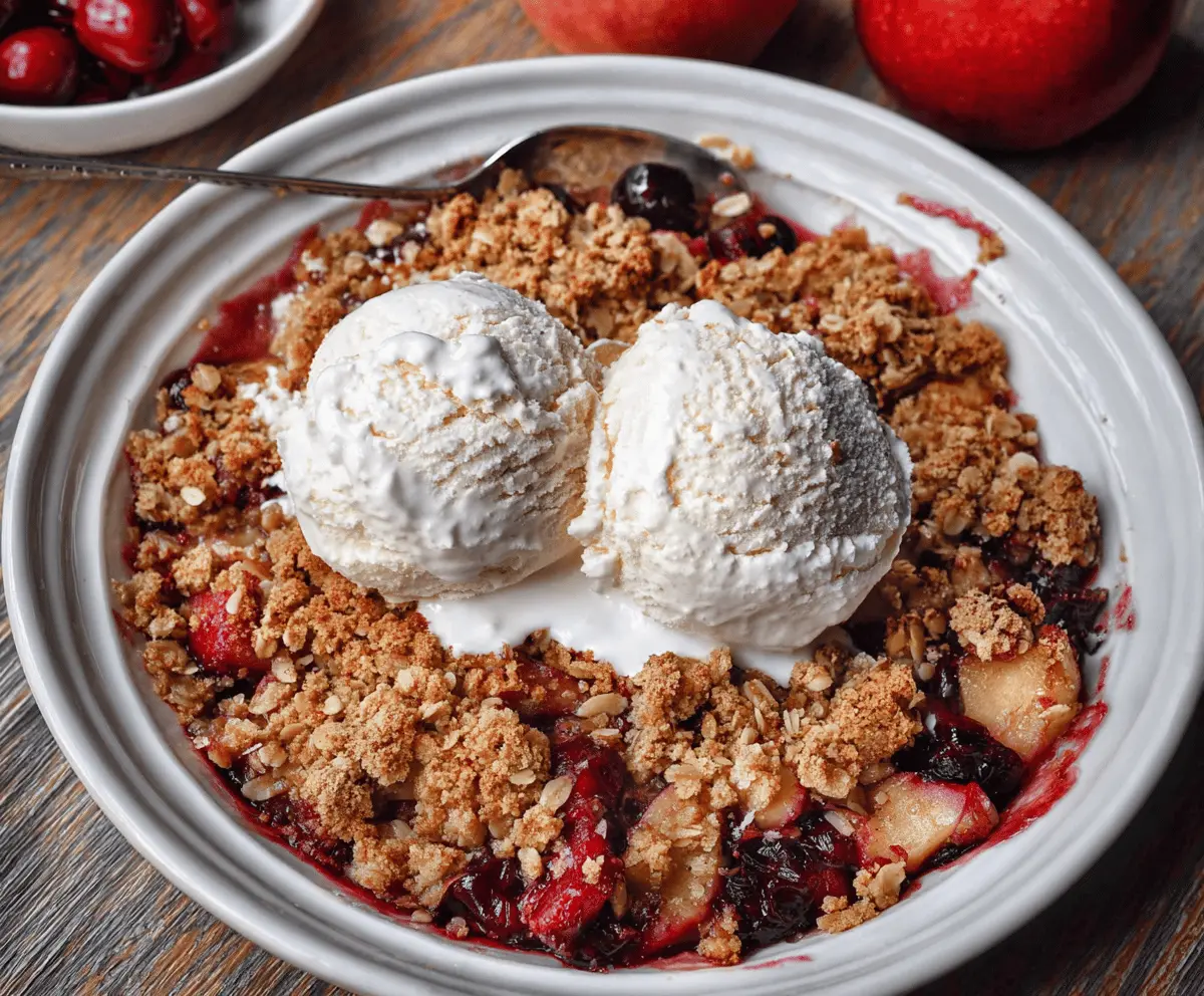 Apple Cherry Crisp is a warm, fruity treat that combines sweet apples and tart cherries, all topped with a crunchy oat mixture. It’s like a hug in dessert form!