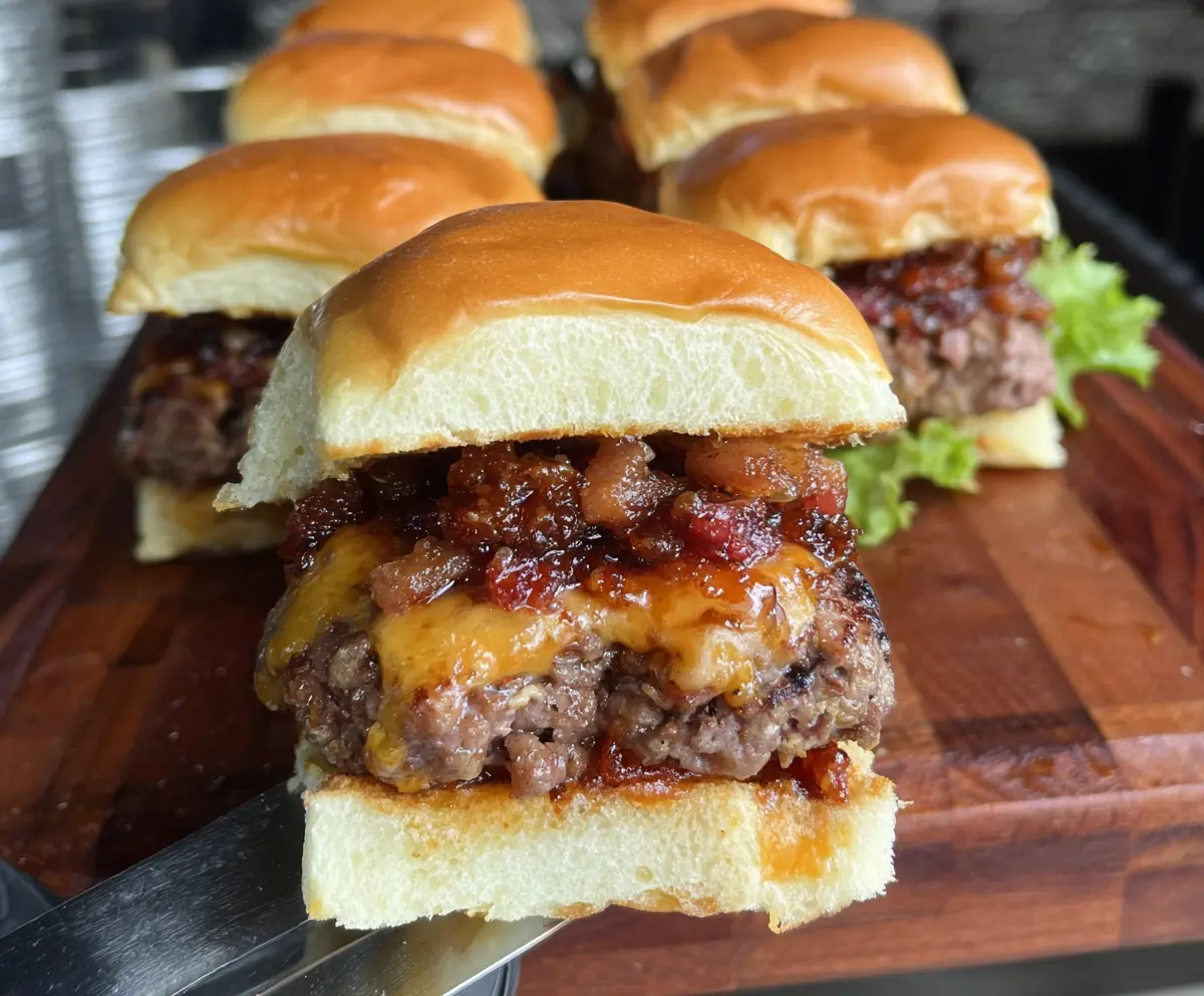 With juicy cheeseburgers and a rich, sweet, and smoky bacon jam, these sliders are sure to be a crowd-pleaser. Dig in!