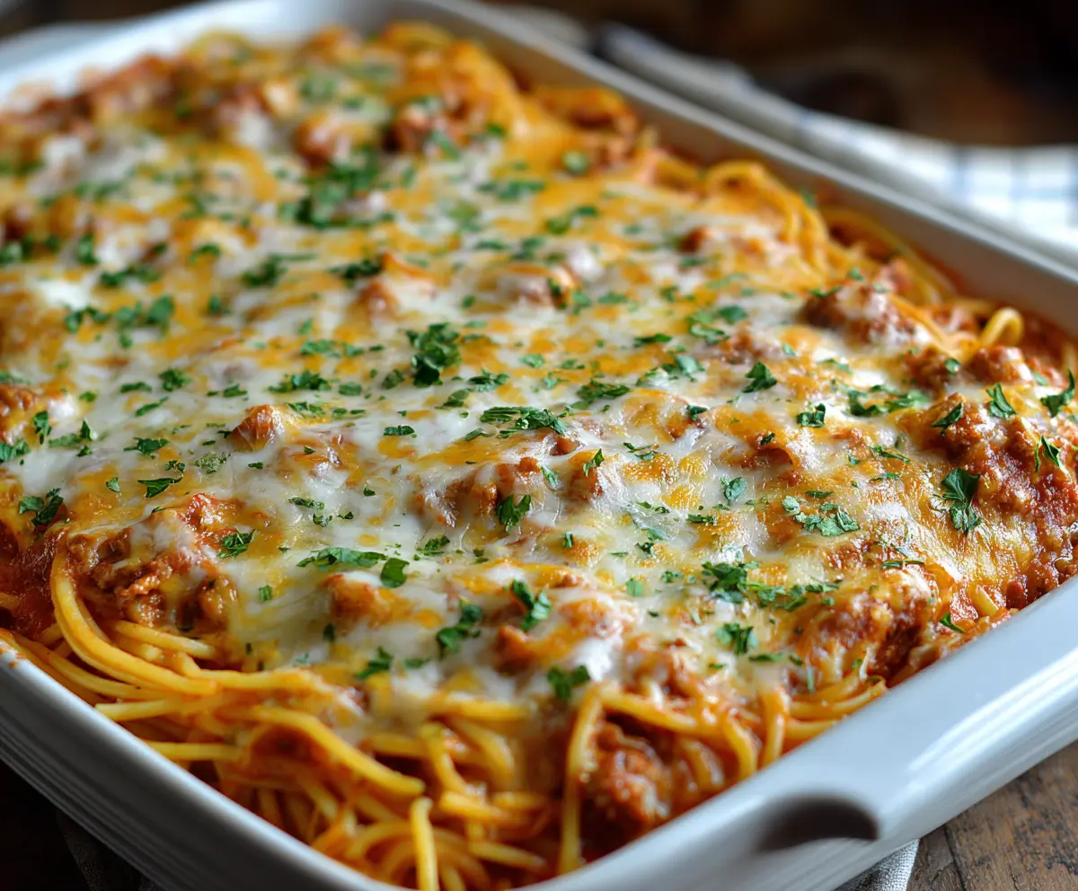 This Baked Cream Cheese Spaghetti Casserole is a warm and cozy dish that’s perfect for family dinners. It combines creamy cheese with tender pasta for a tasty treat that everyone will love!