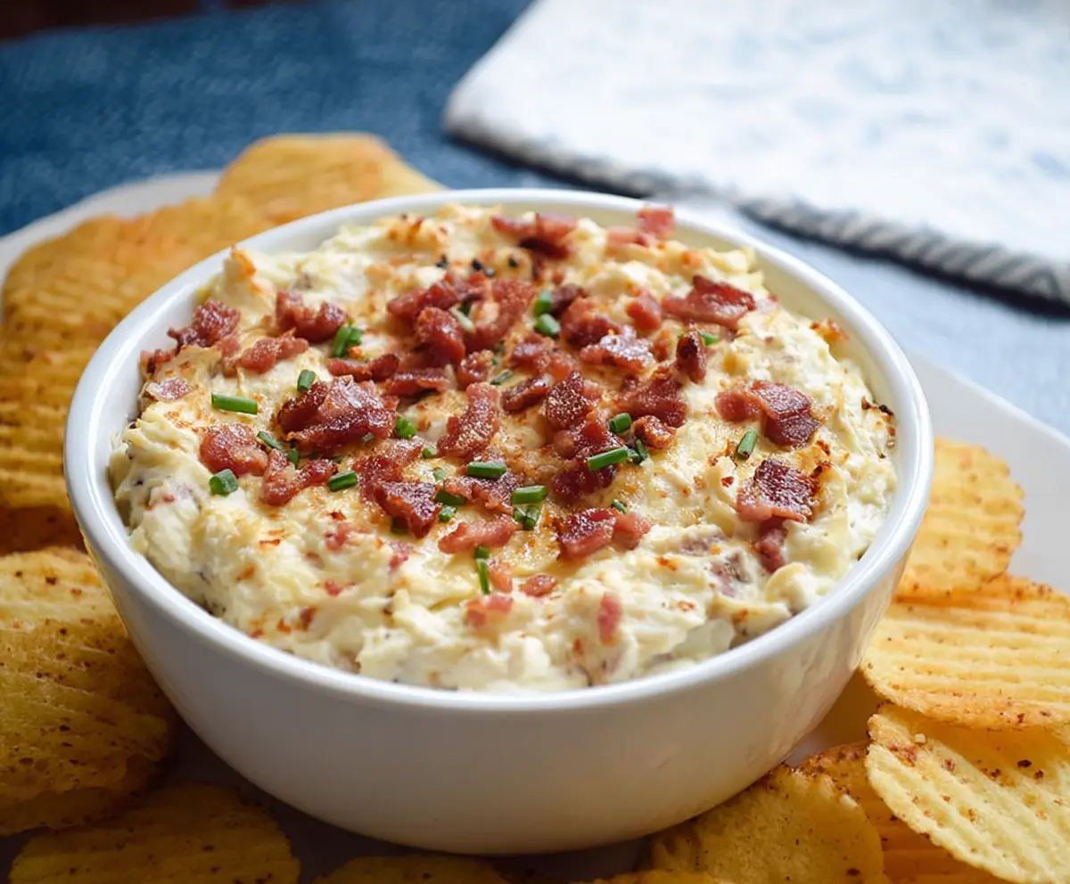 Enjoy this cheesy, warm, and comforting dip that tastes just like a loaded baked potato! Perfect for gatherings or a cozy night in. 😊