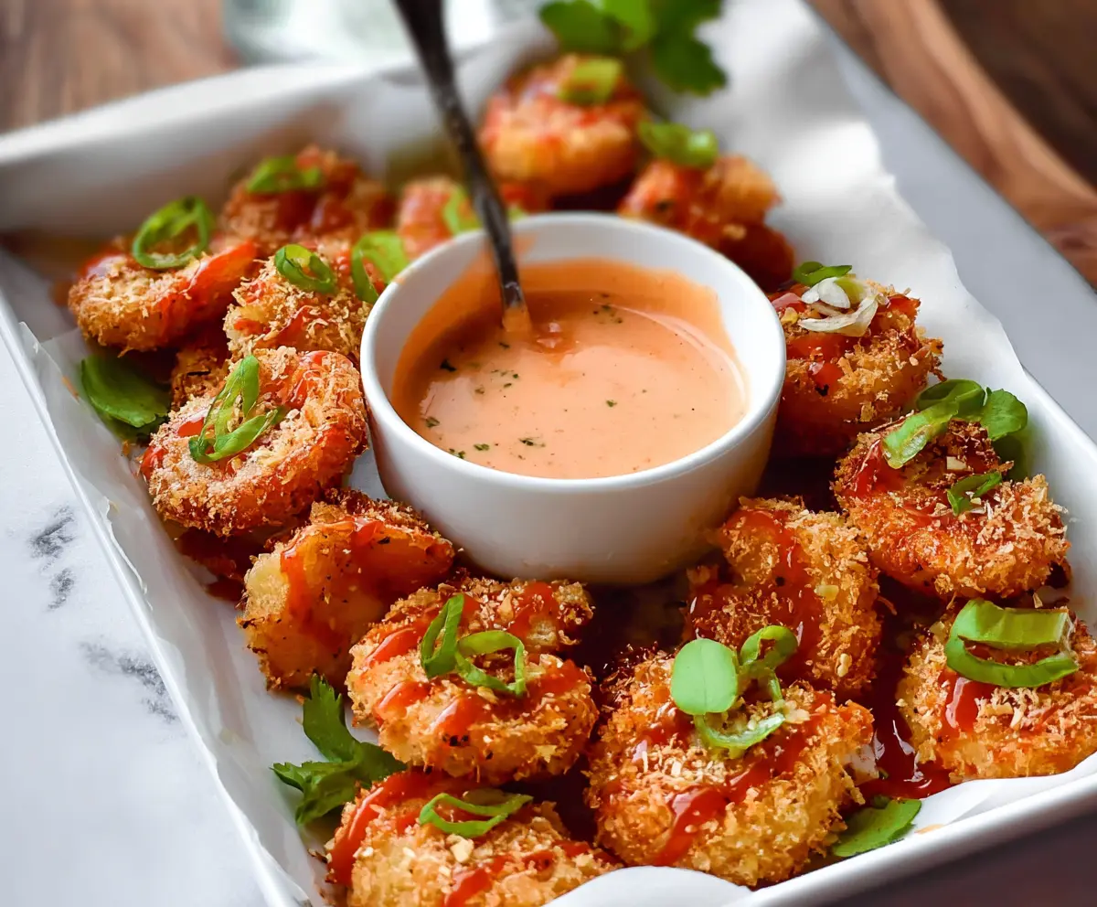 Enjoy your Bang Bang Shrimp Bites—crispy, spicy, and packed with flavor! They’re sure to be a hit!