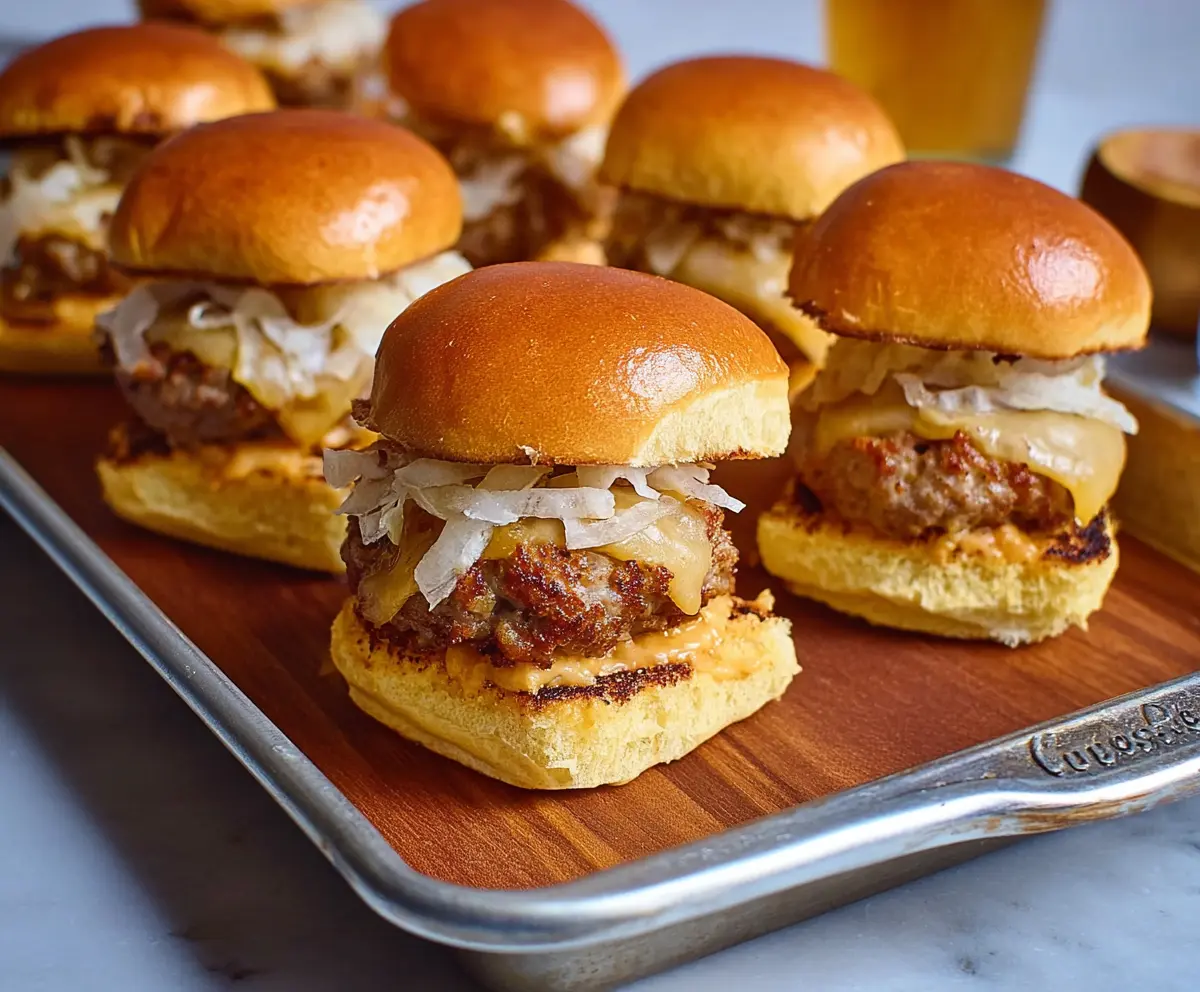 These Beer Brat Sliders are a fun twist on a backyard favorite! Juicy bratwurst soaked in beer, nestled in soft slider buns—perfect for bites of flavor!