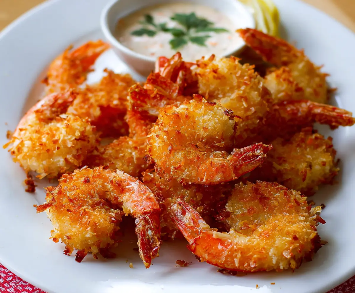 Breaded coconut shrimp is a fun and tasty dish! Each shrimp is coated in a crispy layer of breadcrumbs and sweet coconut, giving it a lovely crunch and tropical flair.
