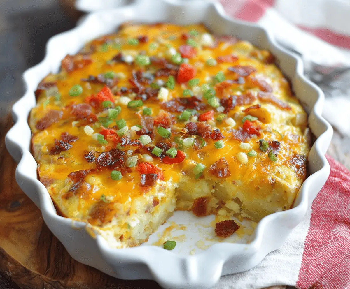Before serving, add some freshly chopped parsley or chives on top for a pop of color and flavor. Enjoy your warm, cheesy, and hearty breakfast casserole—perfect for family meals or brunch gatherings!
