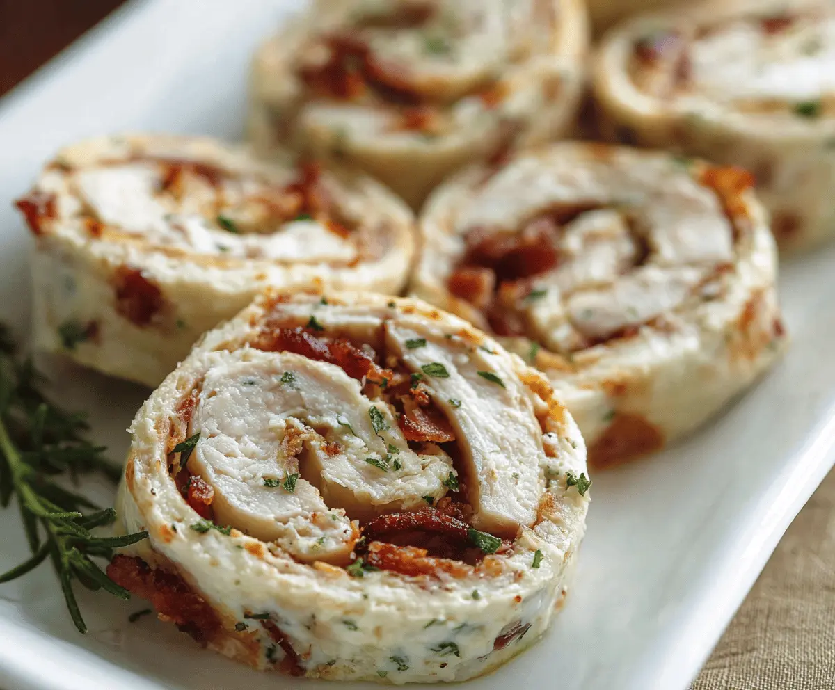 These Chicken Bacon Ranch Pinwheels are perfect for gatherings or as an afternoon snack, balanced with creamy ranch, savory chicken, and crispy bacon. Enjoy the flavor explosion!