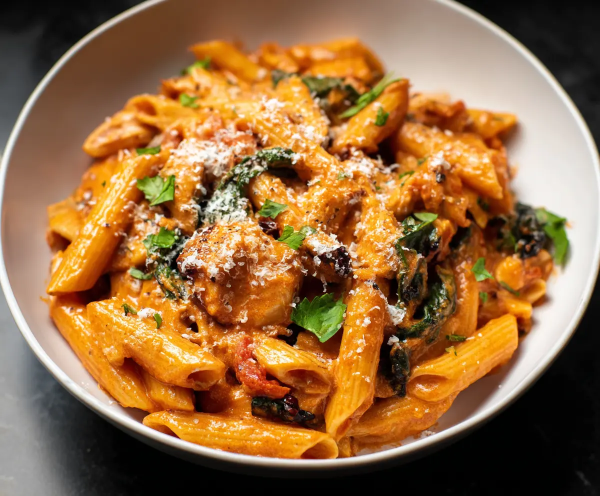 This delightful dish takes about 30 minutes to prepare. You’ll spend about 10 minutes cooking the pasta and chicken and another 20 minutes making the creamy tomato sauce and combining everything. In no time, you’ll have a comforting meal ready to enjoy!
