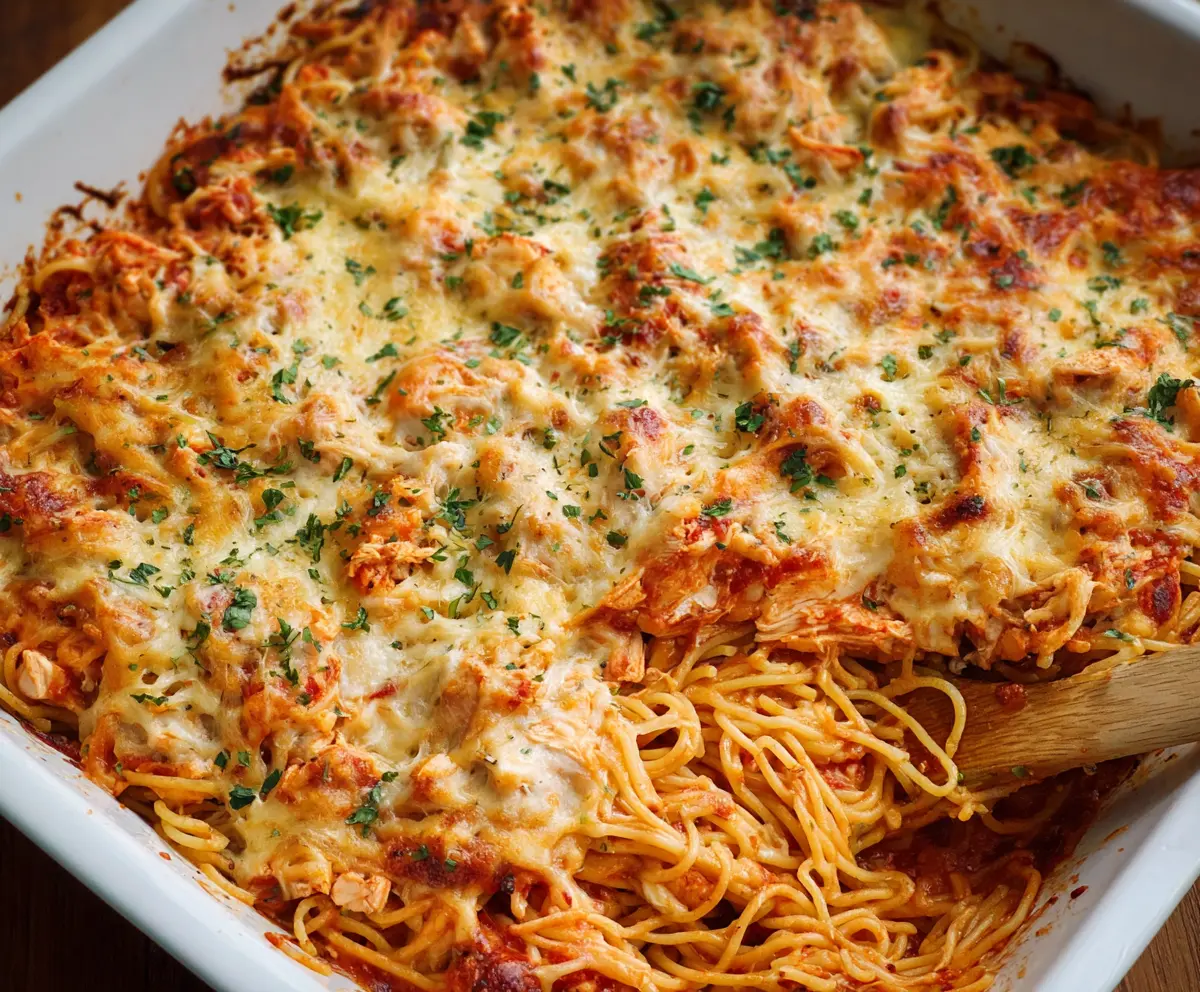 This Chicken Spaghetti Bake is a cozy dish that combines tender chicken, creamy sauce, and twirly spaghetti, all baked to perfection. It’s like a warm hug on a plate!