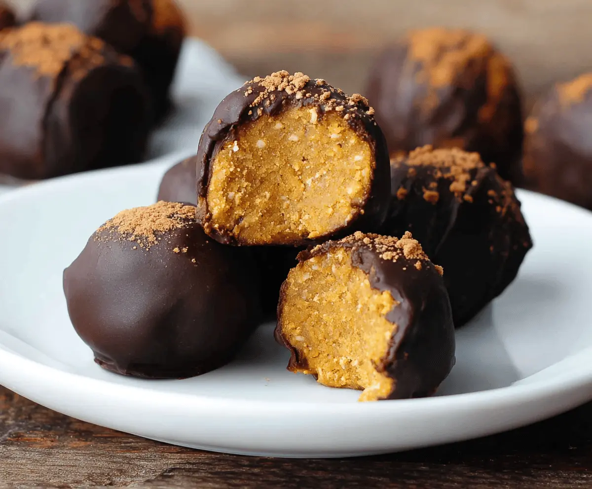 Enjoy these creamy pumpkin protein balls covered in rich chocolate for a guilt-free indulgence! 🎃🍫