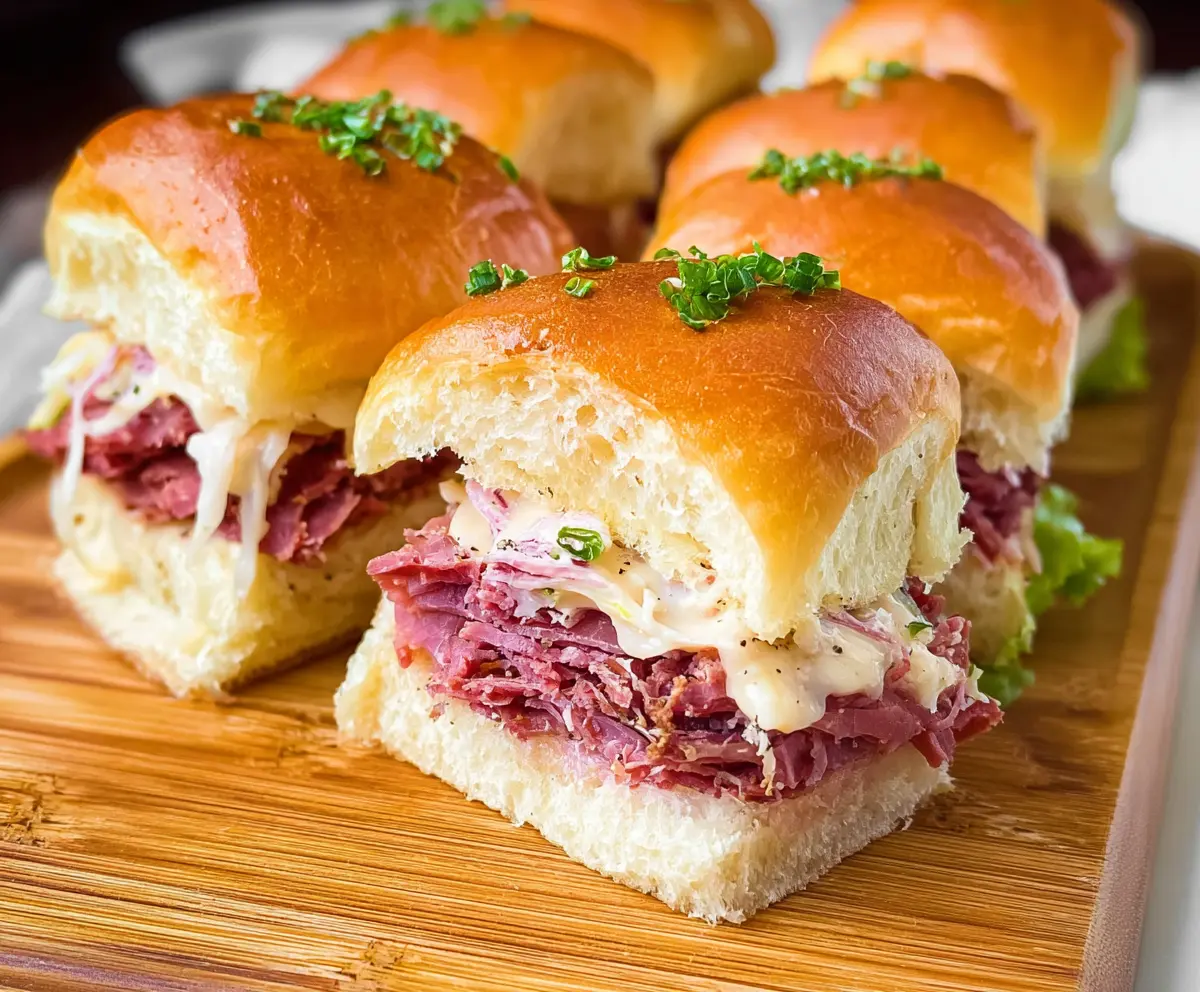 These corned beef sliders are mini sandwiches packed with tender, flavorful beef and tangy mustard, all on soft, fluffy buns. Perfect for parties or a quick snack!