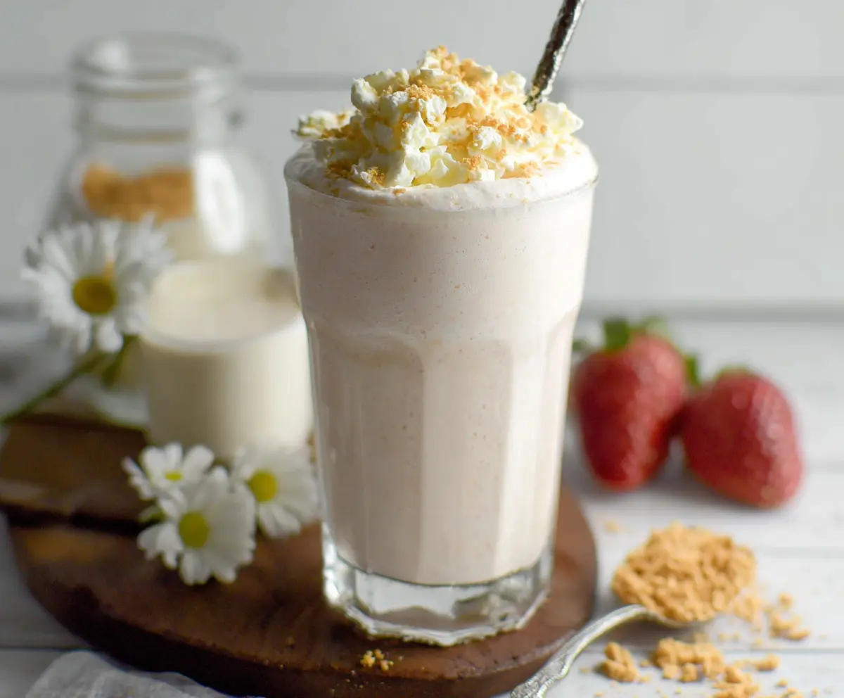 Pour the shake into a glass. For that visual appeal and sweetness, top your shake with a generous dollop of whipped cream. Then, sprinkle the crushed graham crackers or cookie crumbs on top for a little crunch.
