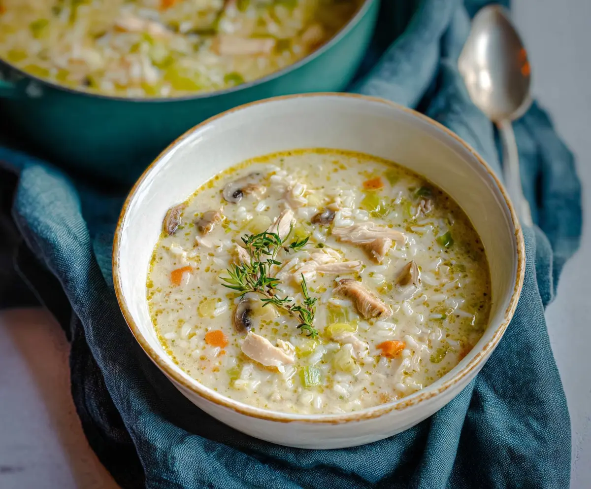 This creamy soup is a cozy blend of tender chicken, soft leeks, and rice that warms you right up. It’s rich and satisfying, perfect for chilly days!
