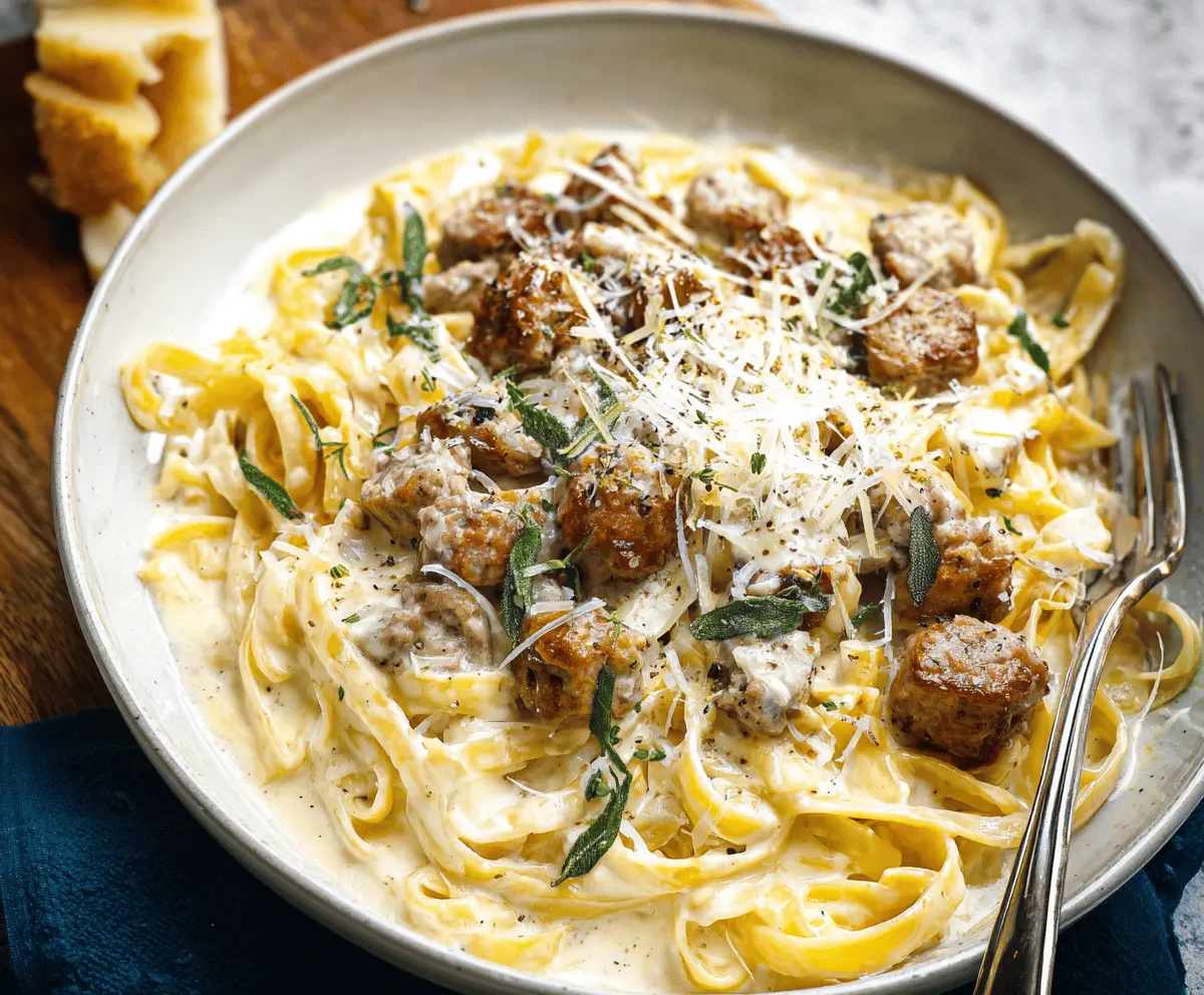 If you like, sauté some fresh sage leaves in a little butter until they become crispy. Sprinkle these on top when serving for added flavor. Serve your creamy Sausage Alfredo hot, garnished with extra Parmesan cheese and chopped parsley if desired. Enjoy!