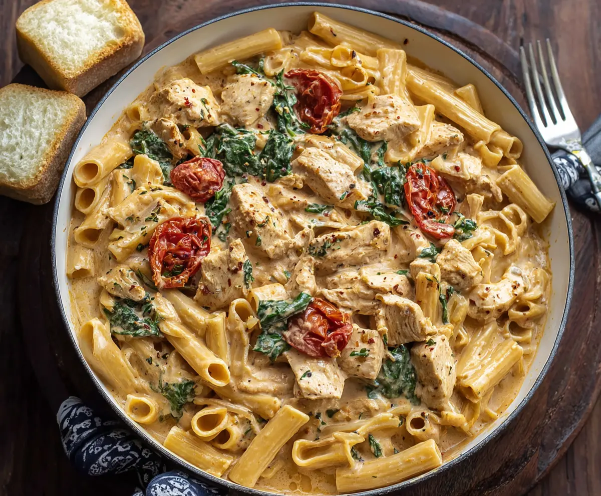 This Creamy Tuscan Chicken Pasta is a dream! With juicy chicken, sun-dried tomatoes, and a rich creamy sauce, every bite is a little taste of Italy right at home.