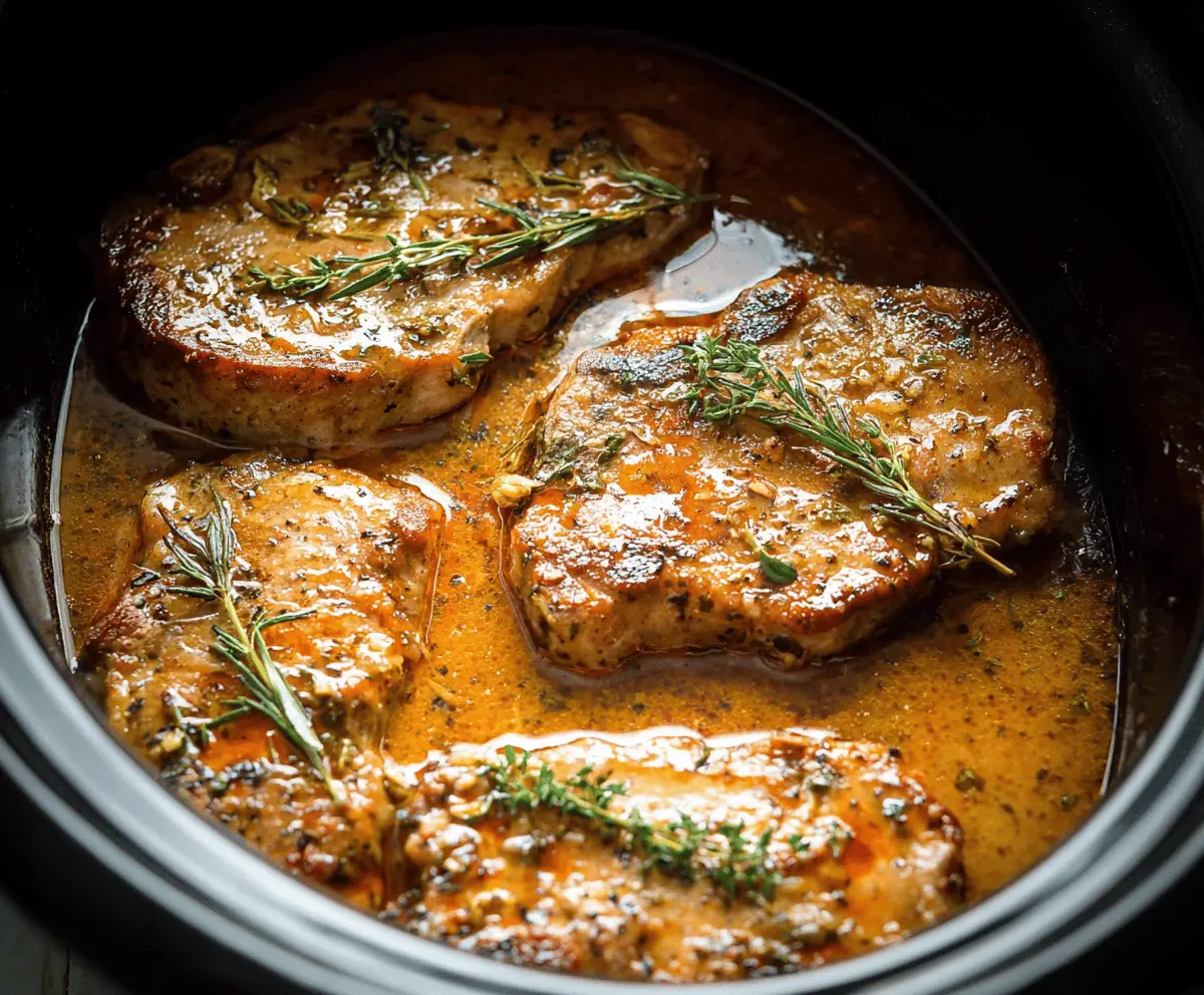 Cover the crockpot and let the magic happen! Cook on LOW for 6-7 hours, or on HIGH for 3-4 hours, until the pork chops are tender and fully cooked.
