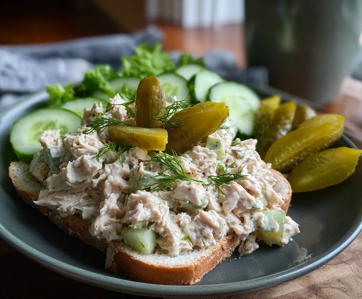 This tuna salad is a fun twist with dill pickles that add a crunch and zing! It’s creamy, easy to make, and perfect for a quick lunch or snack.