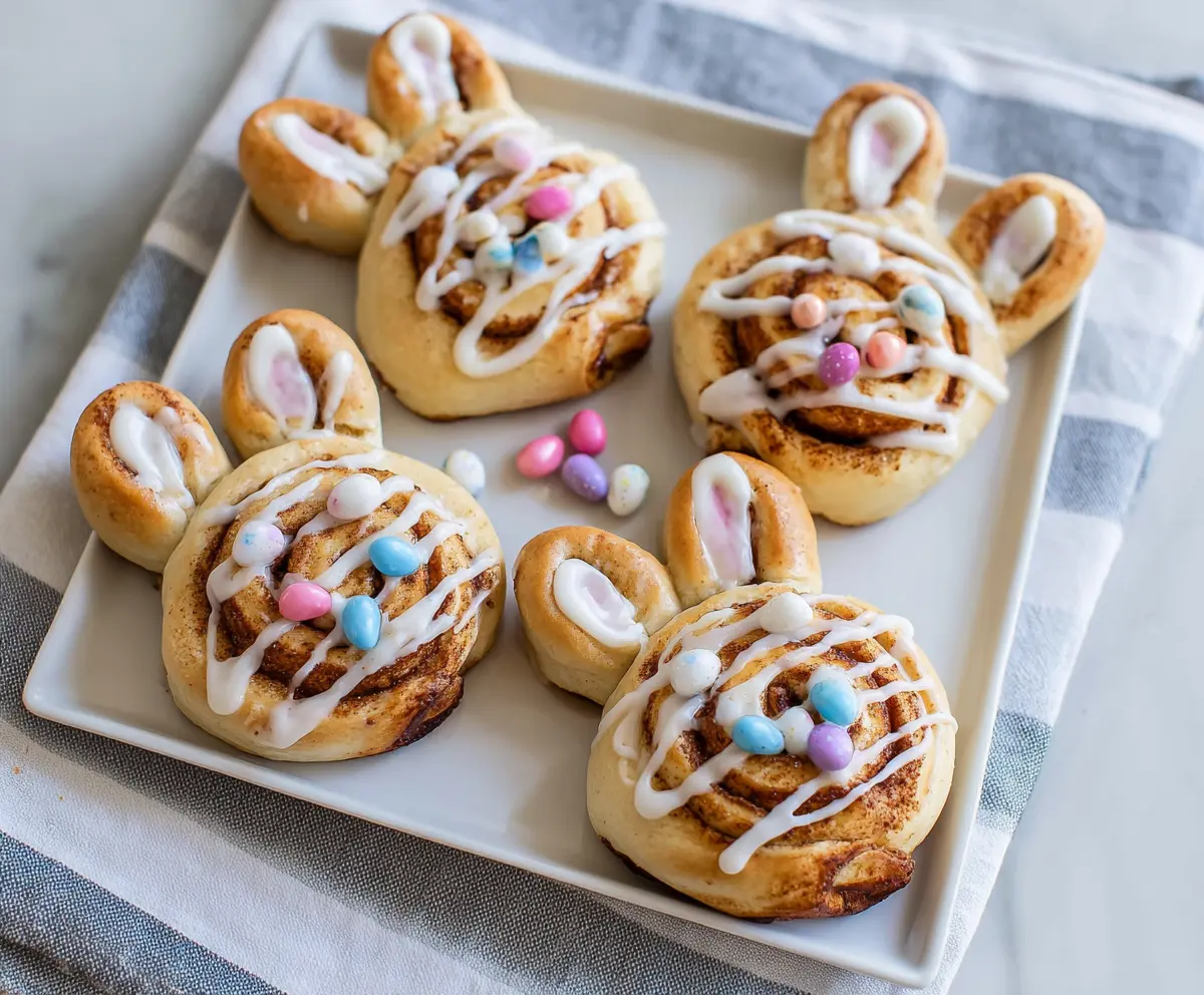 These fun and sweet Easter Bunny Cinnamon Rolls are a treat for both kids and adults! Fluffy dough rolls filled with cinnamon sugar and topped with creamy icing will make your morning special.