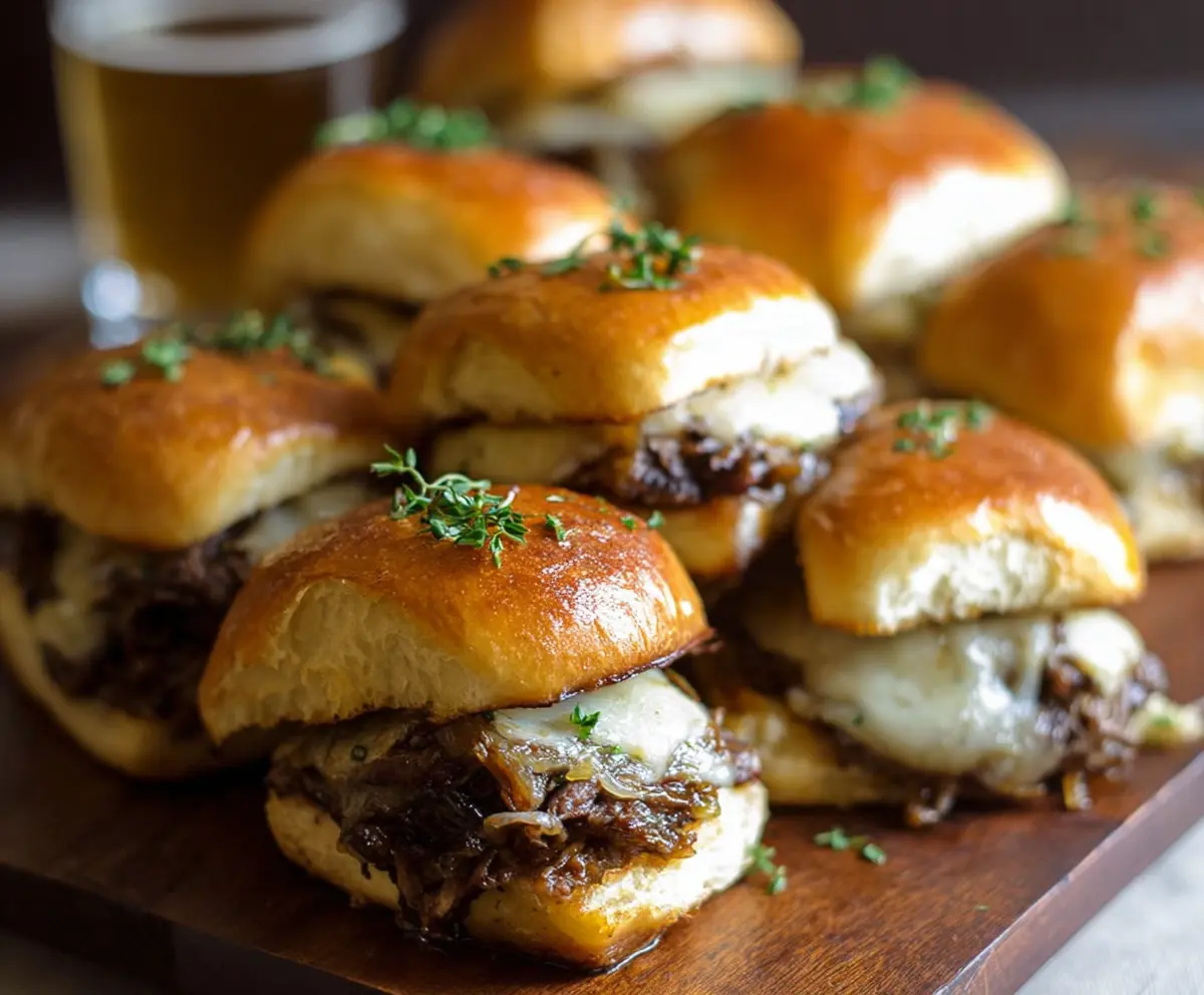 French Onion Beef Sliders are tiny burgers packed with juicy beef and topped with rich, sweet caramelized onions and melted cheese. They’re like a flavor party in every bite!