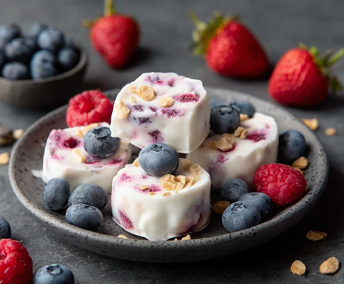Frozen yogurt bites are a fun and tasty treat! They are made with creamy yogurt and can be topped with fruit, nuts, or chocolate for a delightful crunch.
