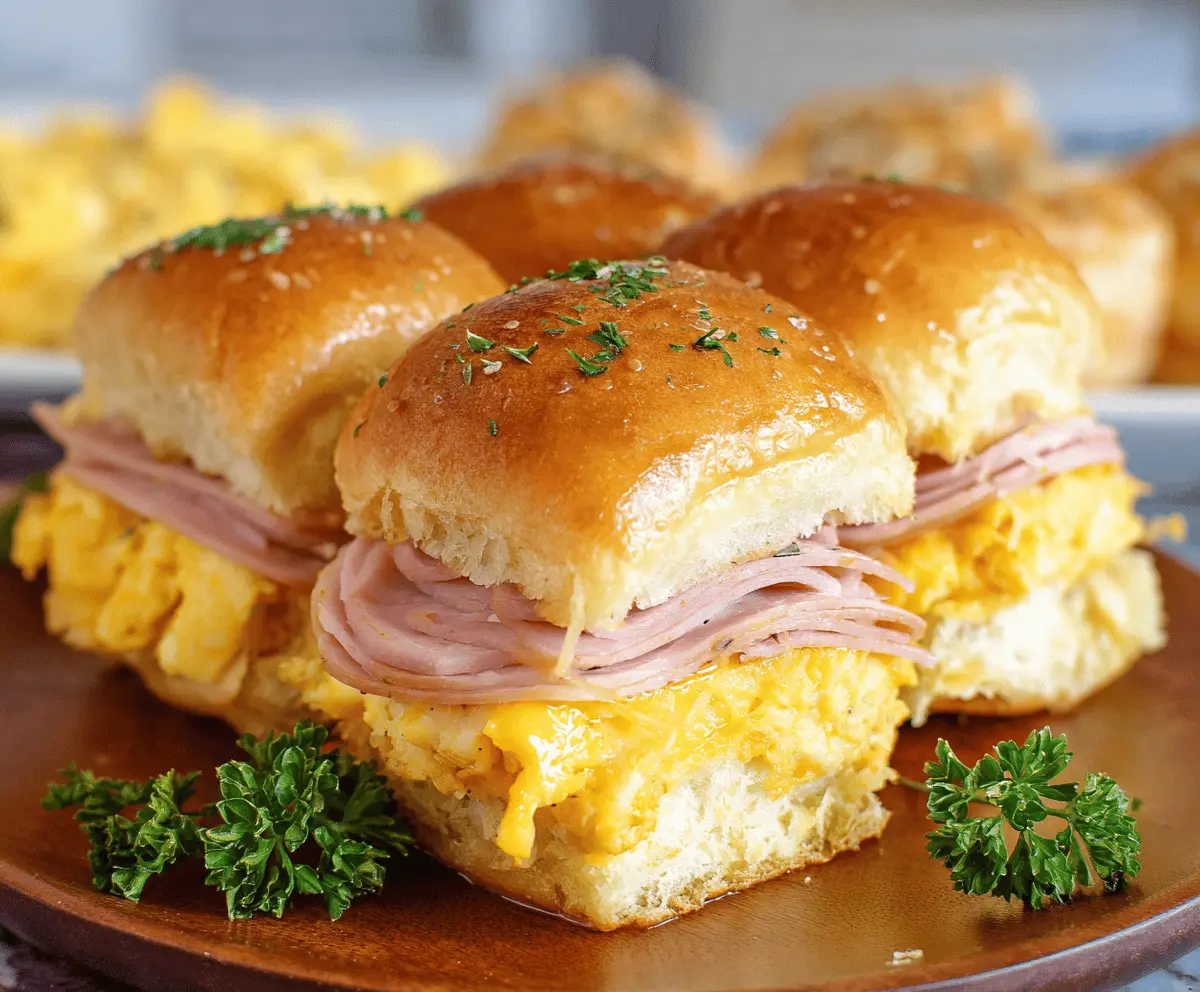 Once baked, garnish the sliders with finely chopped parsley for a fresh touch. Serve warm and enjoy your delicious ham and cheese breakfast sliders!