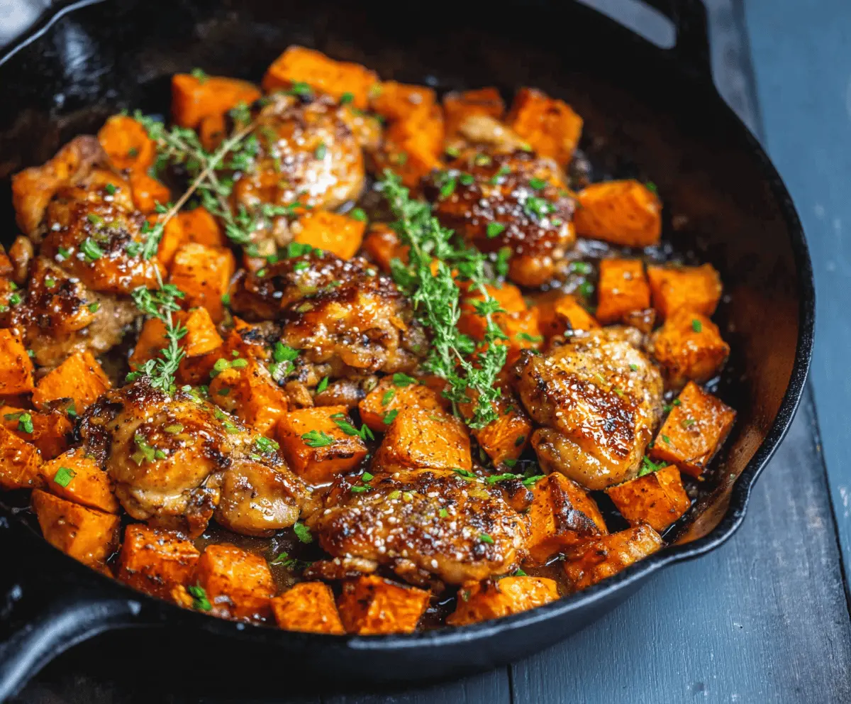 This Honey Garlic Chicken and Sweet Potato dish is perfect for a cozy dinner and super easy to make. Enjoy!