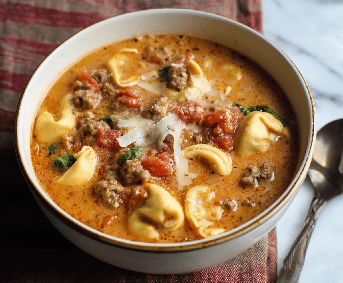 This warm soup features tasty Italian sausage and joyful tortellini swimming in a rich broth. It’s comfort food at its best, perfect for chilly nights!