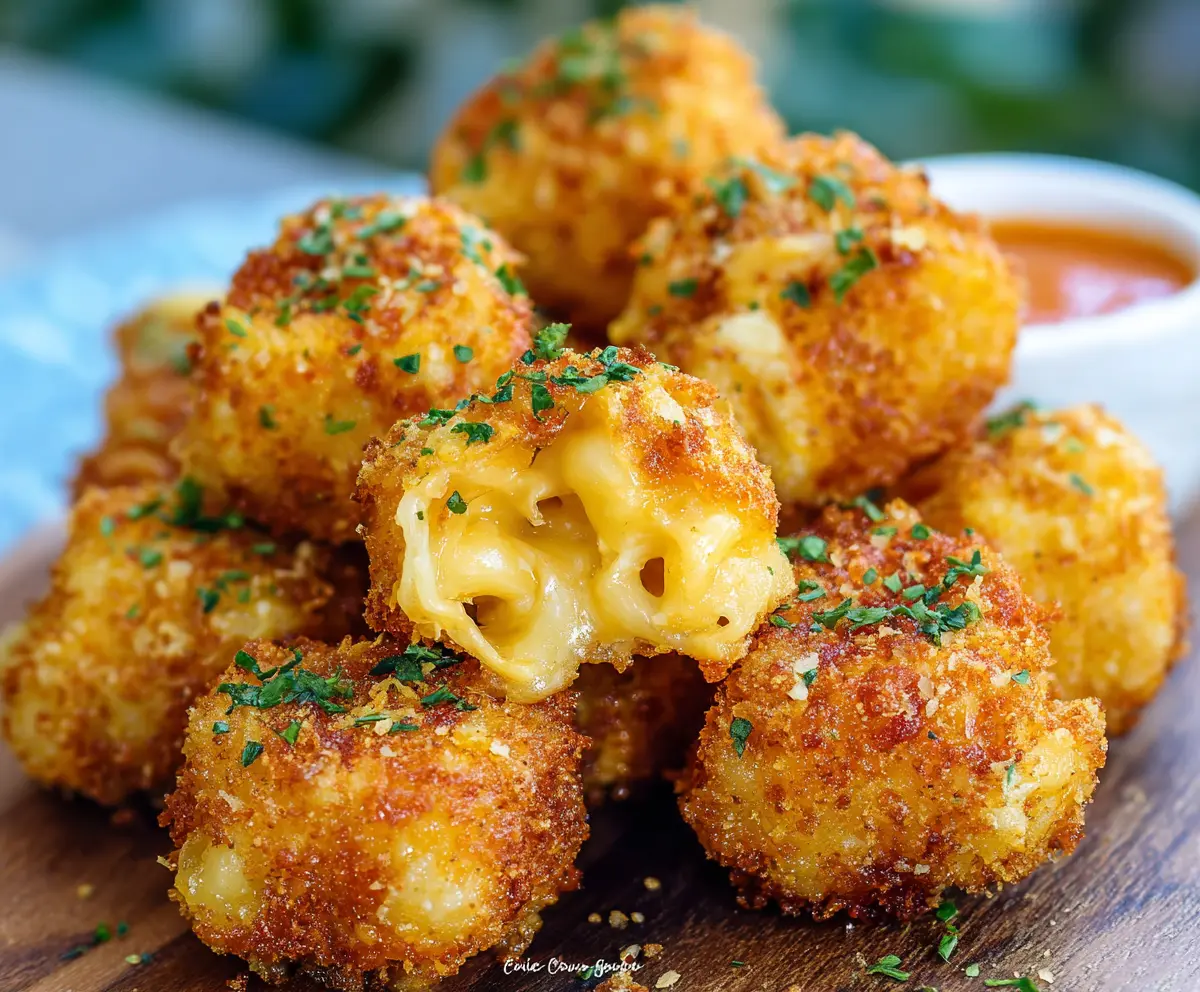 Mac and cheese bites are little balls of joy filled with creamy cheese and pasta. They are crispy on the outside and ooey-gooey on the inside, perfect for snacking!