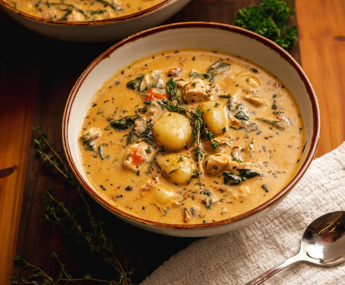 This creamy, flavorful Tuscan-inspired soup with tender chicken, soft gnocchi, and vibrant greens is perfect for cozy meals and sure to impress!
