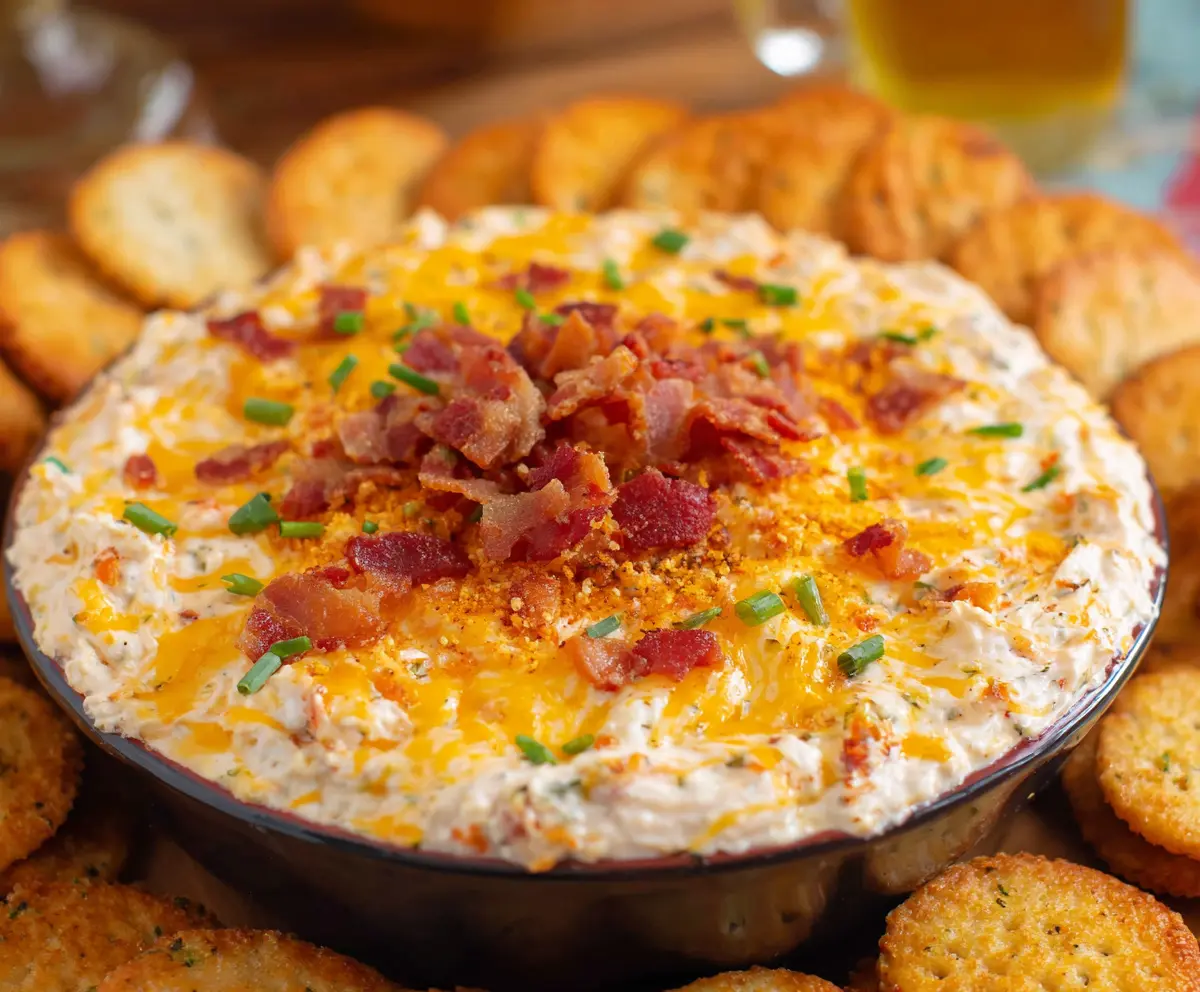 This creamy, cheesy dip with crispy bacon bits and fresh chives is perfect for parties, gatherings, or just a cozy night in. Enjoy every bite!