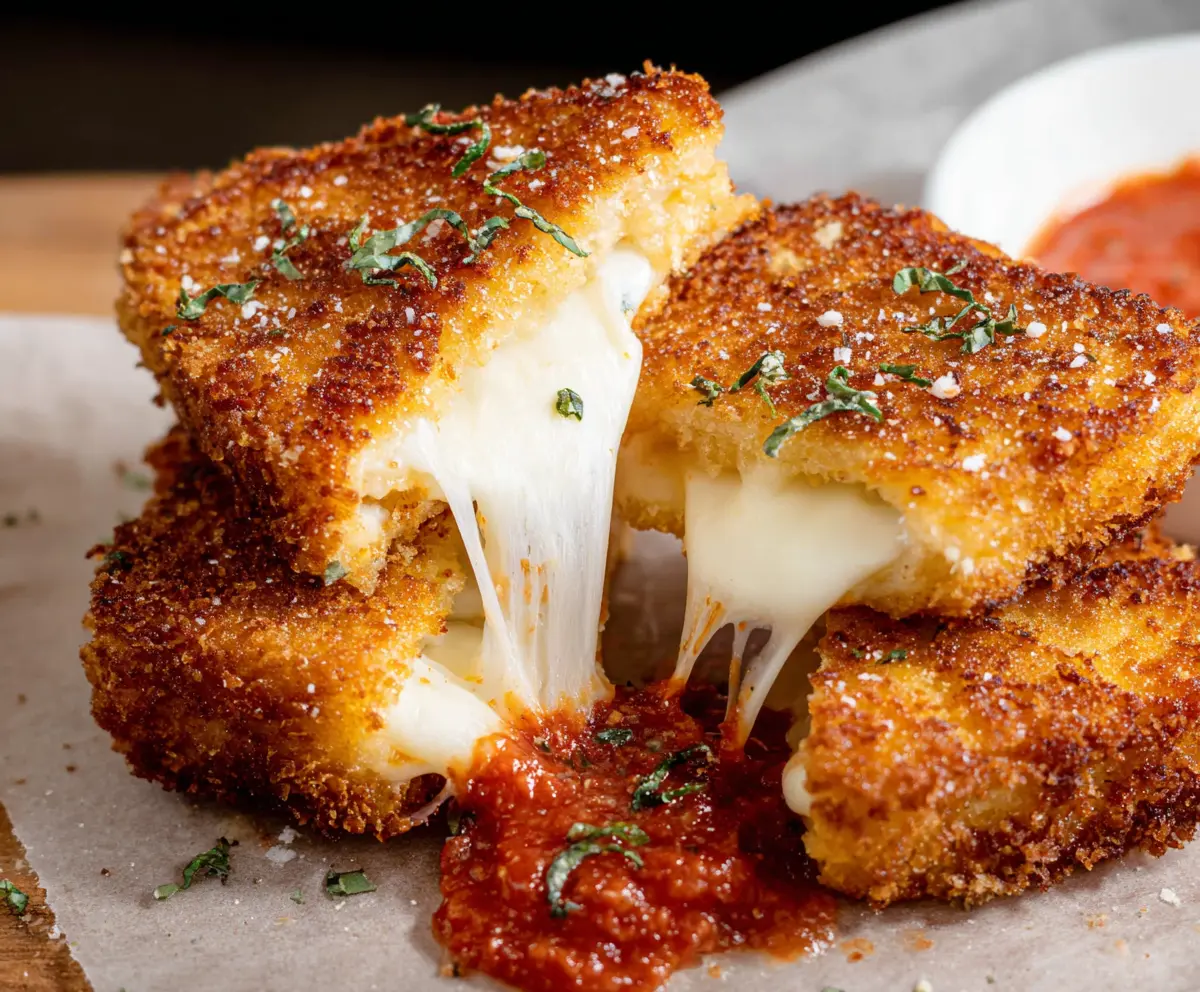 Mozzarella Carrozza is a yummy Italian snack made with gooey melted mozzarella cheese tucked between slices of bread. It’s golden and crispy on the outside, making every bite super enjoyable!