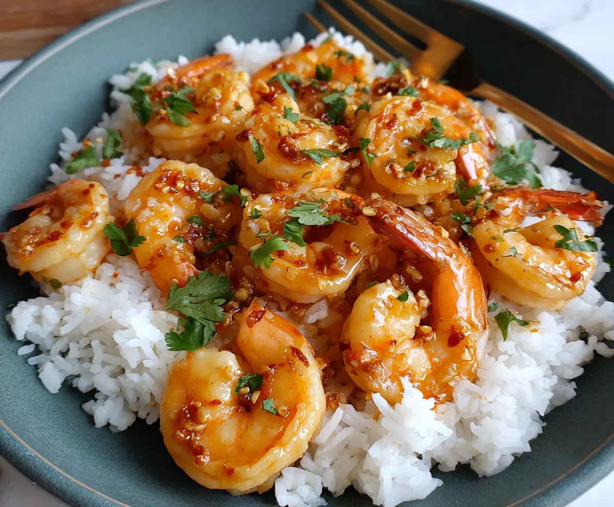 Serve the shrimp immediately over a bed of warm cooked white rice. Be sure to spoon extra sauce over the shrimp and rice for that extra kick of sweetness and flavor.