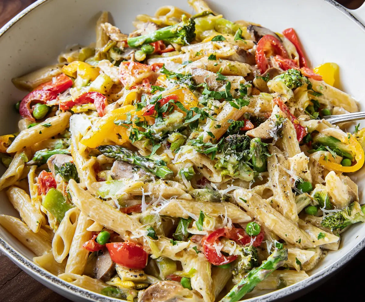 Pasta Primavera is a colorful and fresh dish full of tasty vegetables like bell peppers, zucchini, and carrots mixed with pasta. It’s light, healthy, and perfect for a quick dinner!