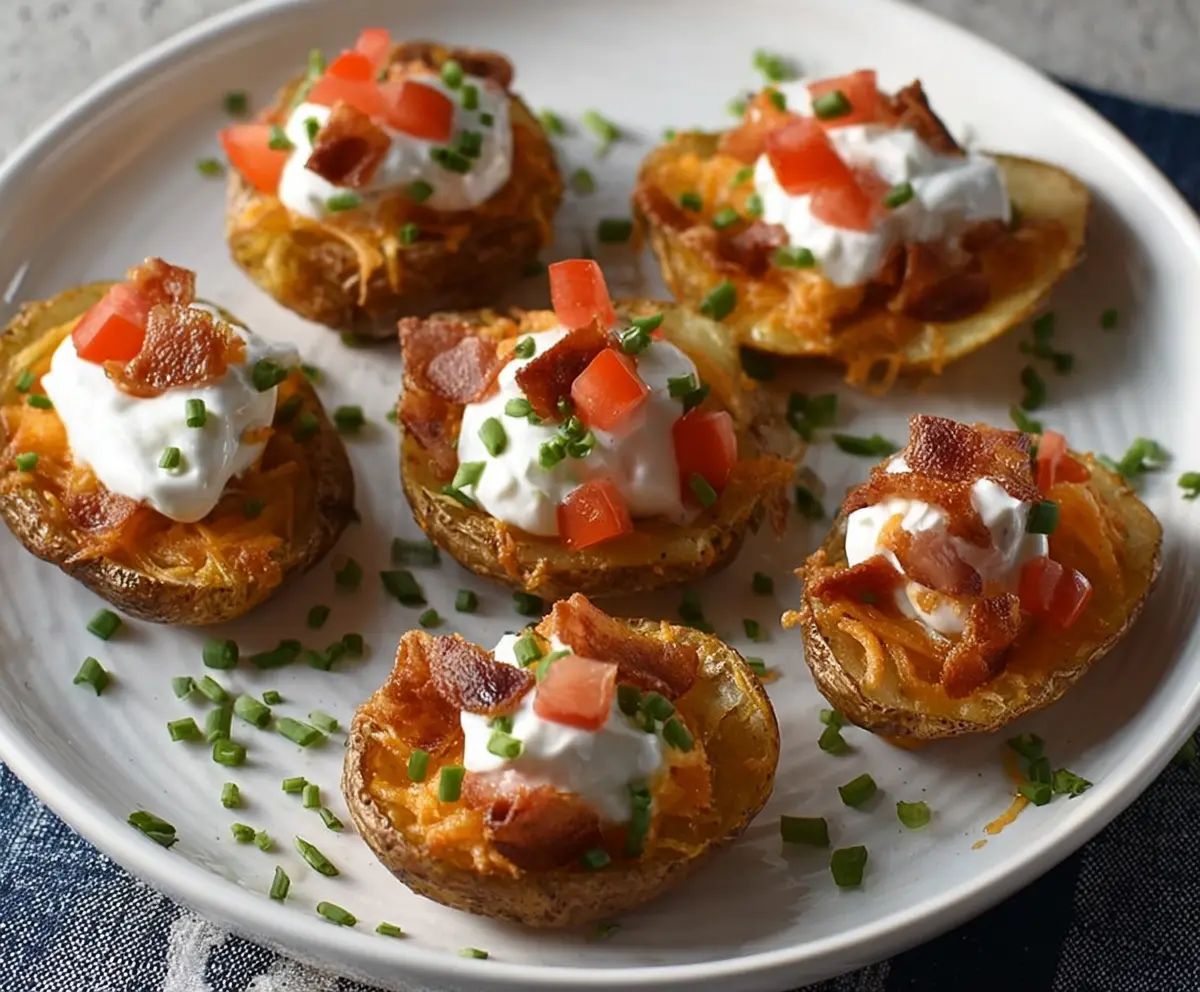 These crispy, cheesy potato skin bites are ready to be devoured! Serve them immediately as a fantastic appetizer or snack that’s sure to please everyone.