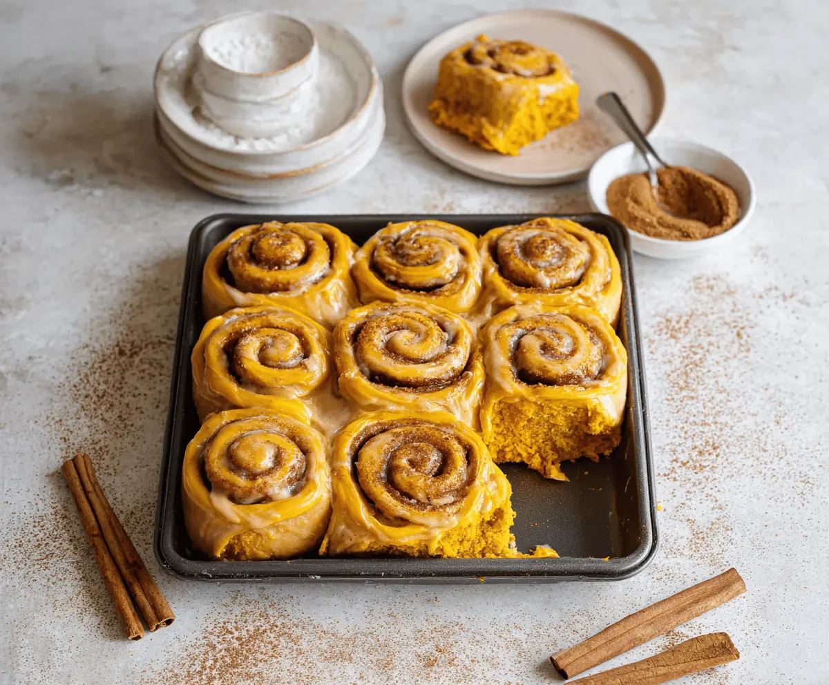Pumpkin Cinnamon Rolls with Coffee Maple Frosting