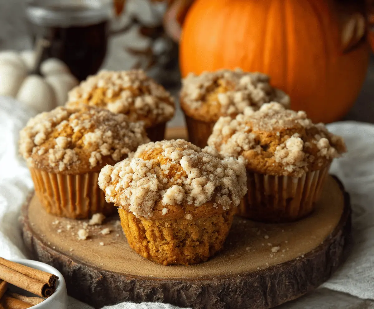 Delicious homemade pumpkin streusel muffins with a golden crust and crumb topping, perfect for fall breakfast or snacks