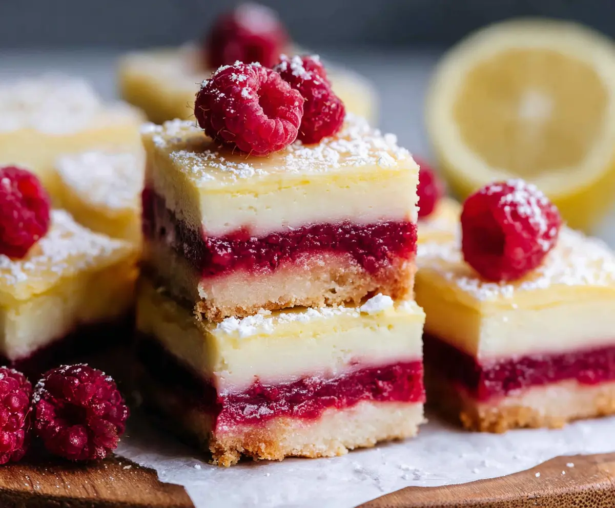 Raspberry Lemon Cheesecake Bars are a tasty treat with a creamy filling that mixes sweet and tart flavors. The fresh raspberries on top add a lovely color and fruity touch!