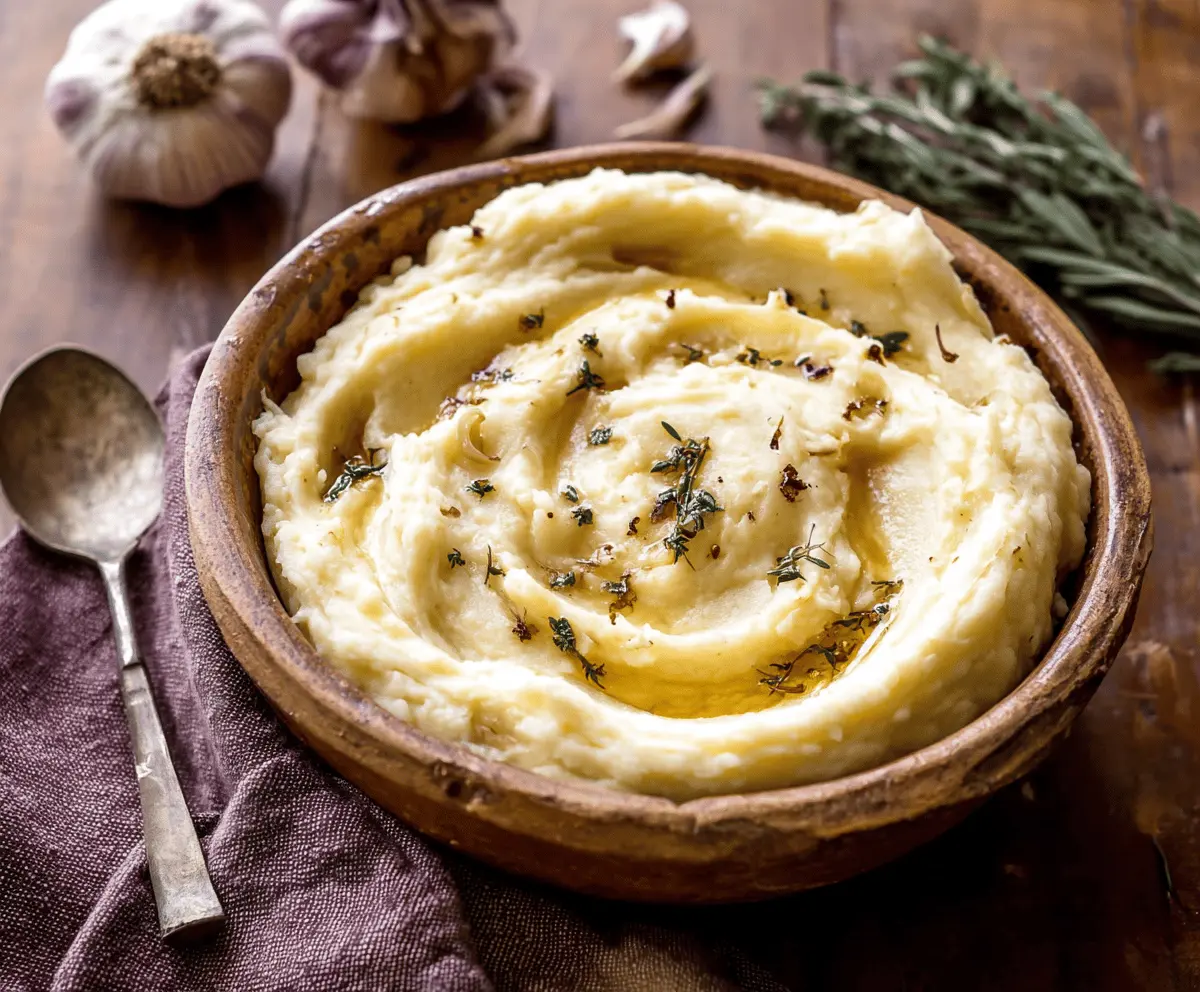 Add the softened butter and warmed milk (or cream) to the mashed potatoes and garlic mixture. Mix it all together until it’s smooth and creamy. If you want it a bit looser, feel free to add more milk!
