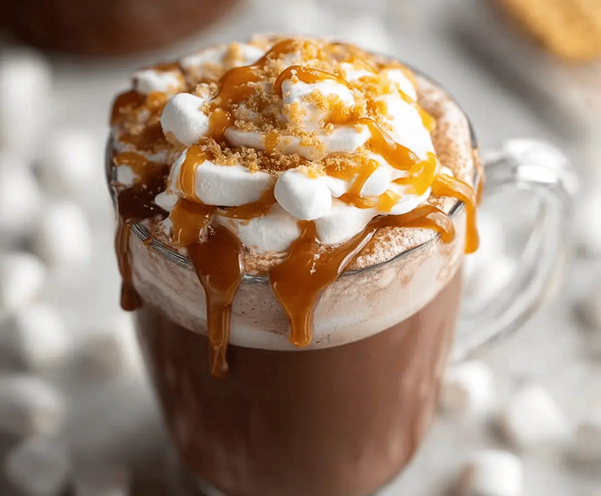Top each mug generously with mini marshmallows and, if you like, a dollop of whipped cream. Drizzle some extra caramel sauce over the top for a finishing touch.