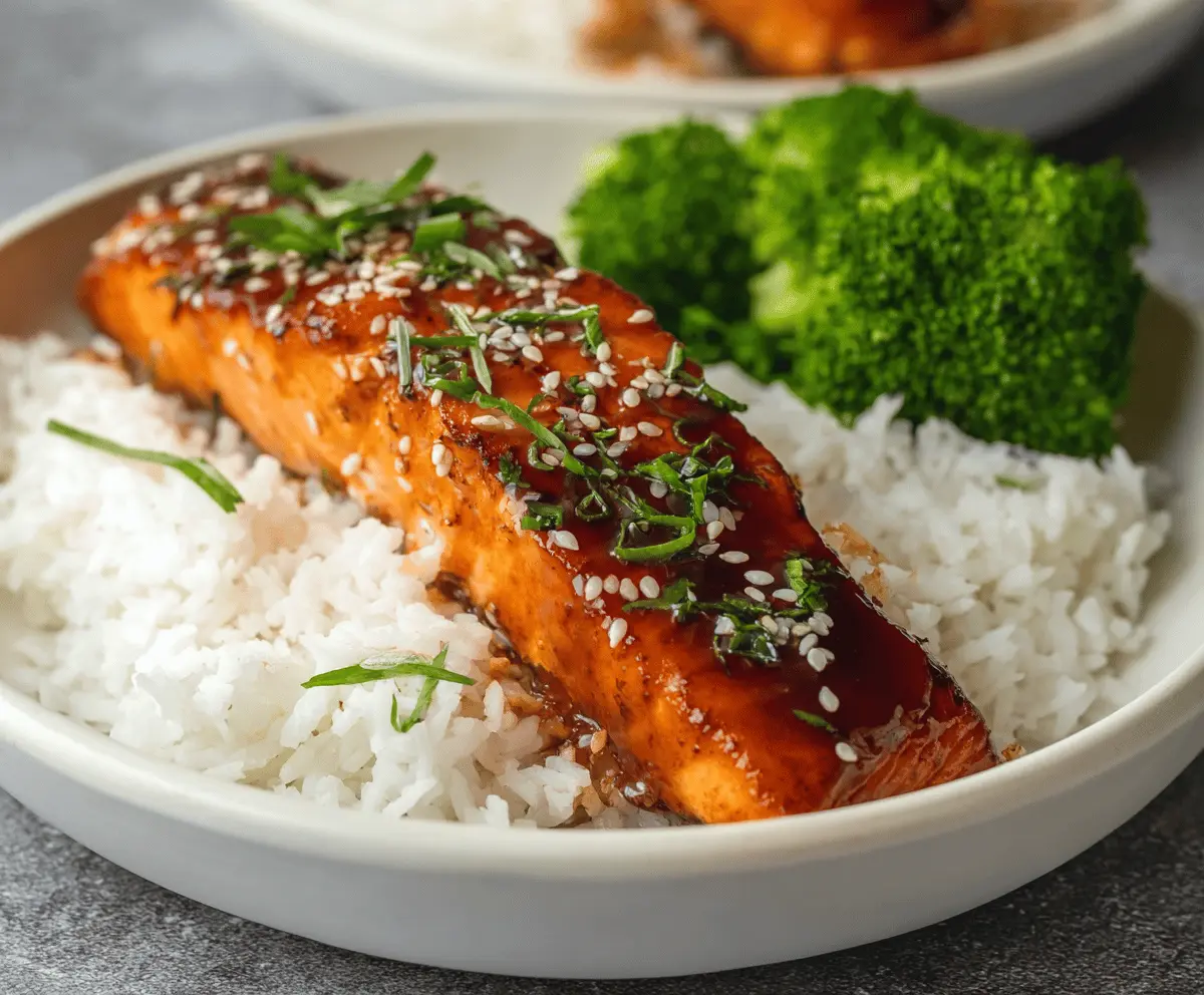 Once the salmon is done, carefully pour or brush the thickened teriyaki glaze over the top of the cooked salmon. Serve the teriyaki salmon over a bed of fluffy white rice with a side of steamed broccoli. It’s a balanced, colorful plate—delicious!