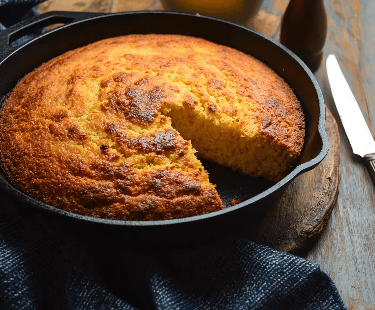 This recipe yields a beautifully golden, moist cornbread with a crisp crust, perfect for any meal! Enjoy your homemade skillet cornbread!