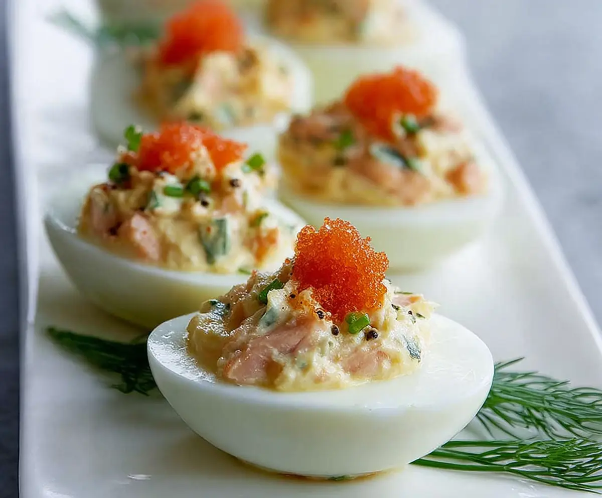 For a touch of elegance, garnish each stuffed egg with a small sprig of dill and a few pearls of salmon roe or red caviar, if you like. Cover them and chill in the refrigerator for at least 30 minutes before serving. This wait helps the flavors meld beautifully.