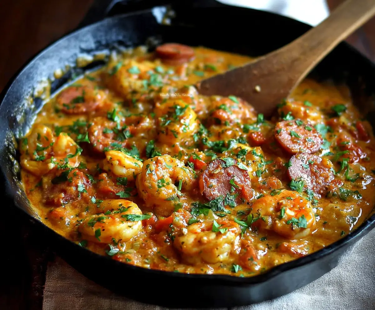 Return the browned sausage to the skillet. Then, add the raw shrimp and cook for another 3-5 minutes until the shrimp turn pink and are fully cooked. Make sure not to overcook them!