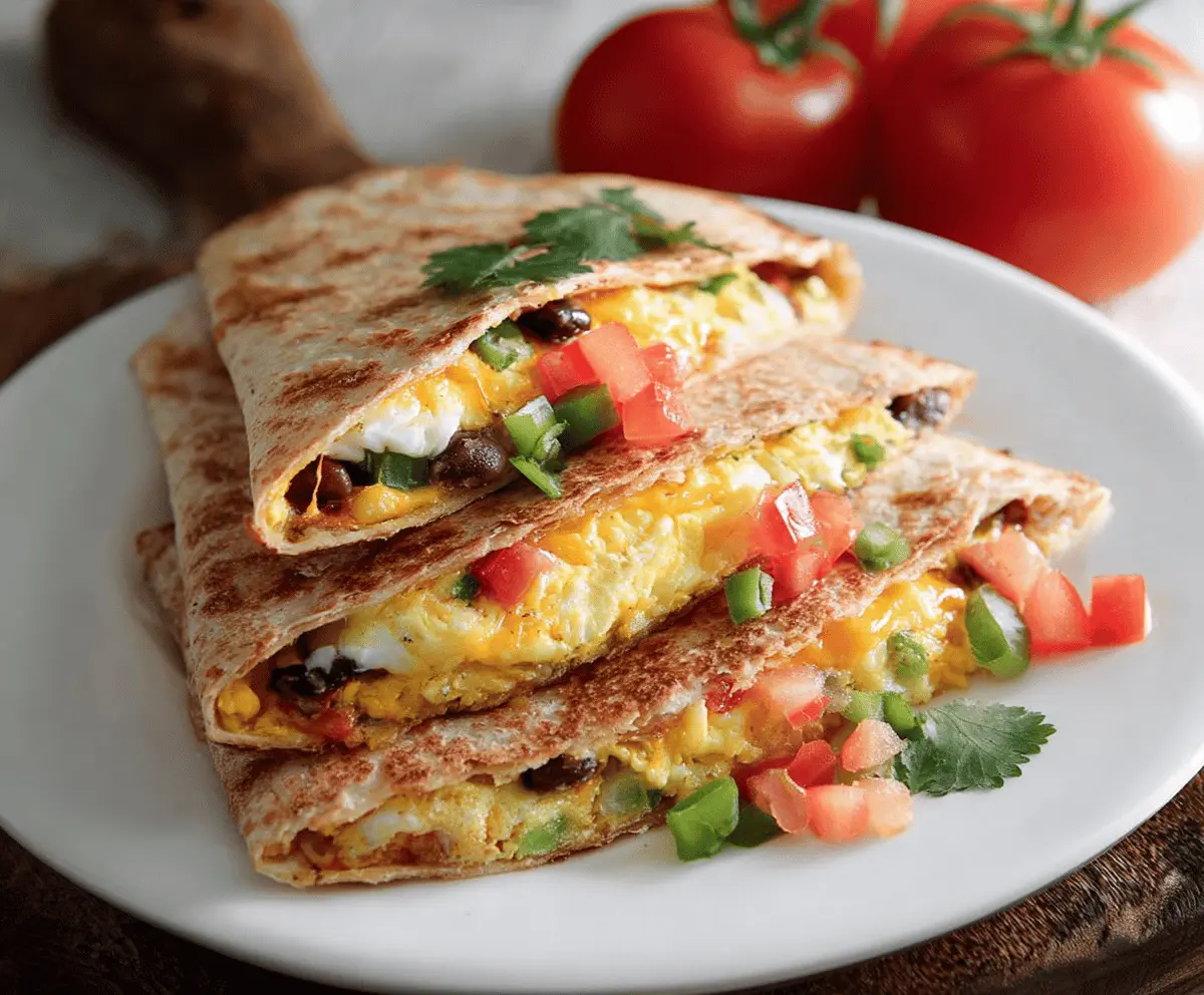 This Southwest Breakfast Quesadilla is a tasty start to your day! It’s filled with fluffy eggs, melty cheese, and zesty peppers, all snug in a warm tortilla.