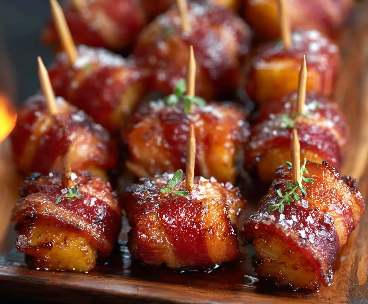 Enjoy these sweet, spicy, smoky pineapple bites that burst with juicy goodness and crispy bacon delight!