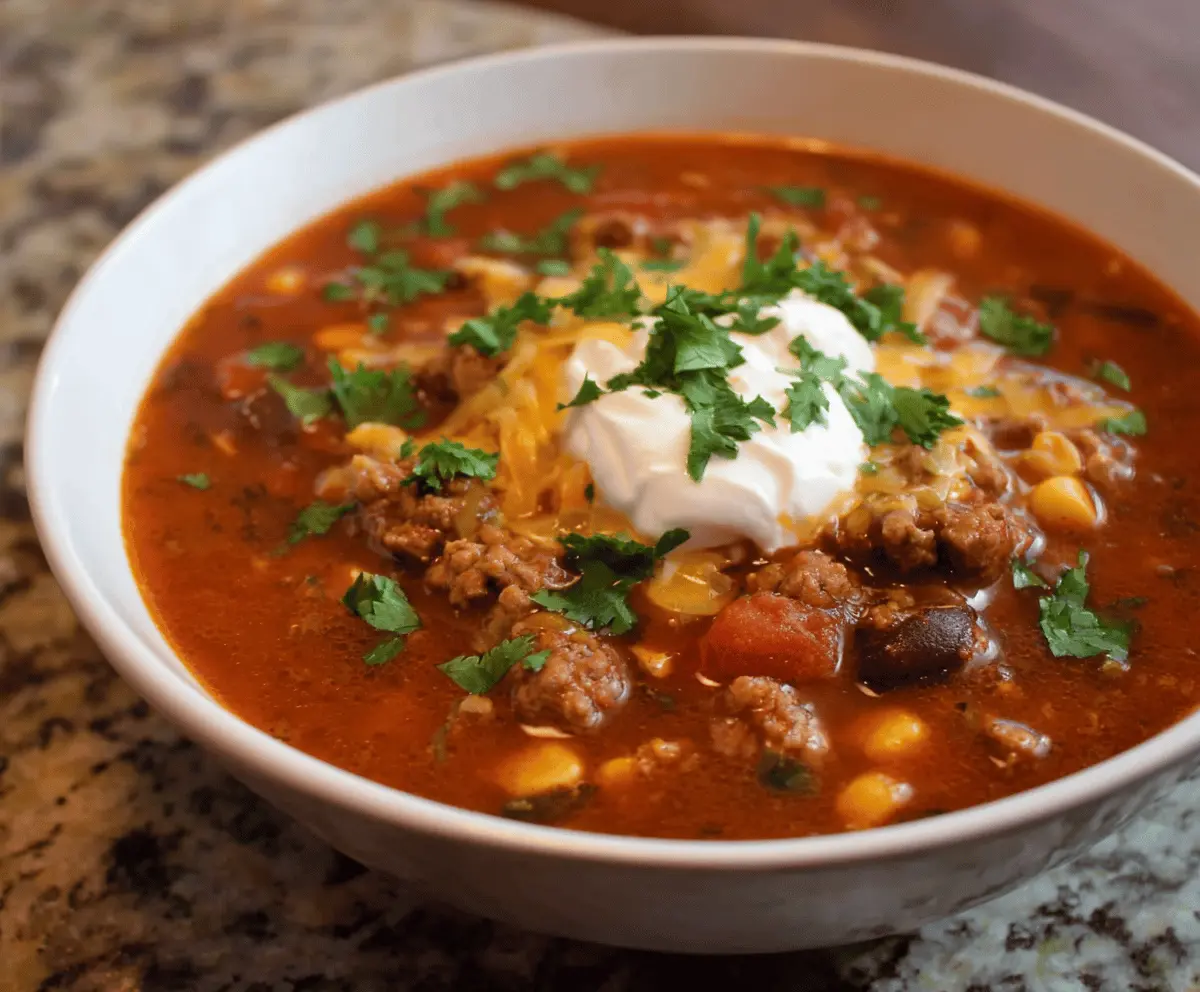 Serve the Spicy Taco Soup with tortilla chips on the side for dipping or topping. Enjoy this cozy, flavorful dish that’s sure to warm you up!