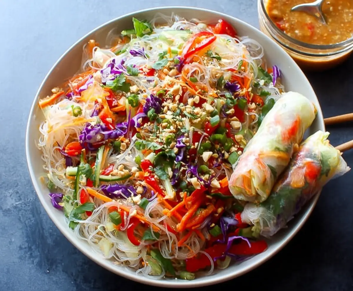 This delightful Spring Roll Salad takes about 20 minutes to prepare. You’ll spend around 10 minutes soaking the noodles and prepping the veggies. Then, it’s just a matter of whisking the dressing and combining everything together. It’s fresh, quick, and packed with flavors!