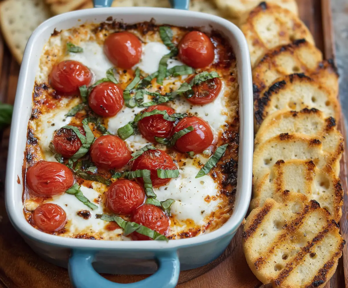 This warm, cheesy, and tomato-packed dip captures all the classic flavors of a Caprese salad in a fun, shareable format. Perfect for gatherings or cozy nights in!