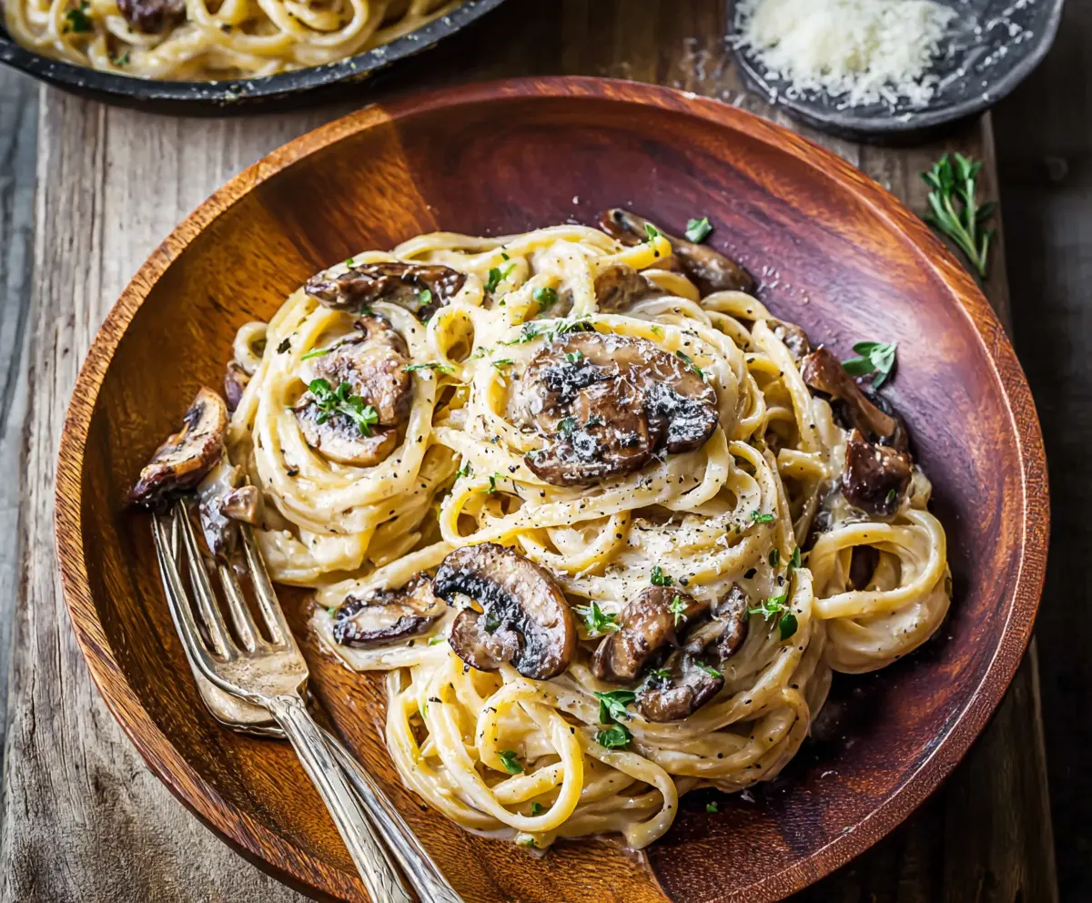 It’s time to plate up! Serve the pasta immediately, garnishing with freshly chopped parsley and an extra sprinkle of Parmesan if desired. Enjoy every bite of this rich, creamy truffle mushroom pasta!
