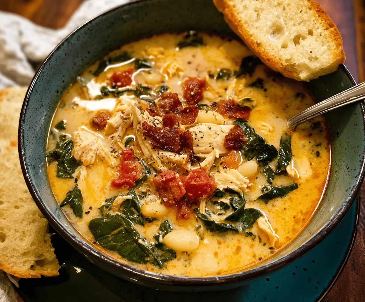 This Tuscan Chicken Soup is a warm hug in a bowl! It’s packed with tender chicken, fresh spinach, and tasty tomatoes, creating a comforting feast everyone will love.