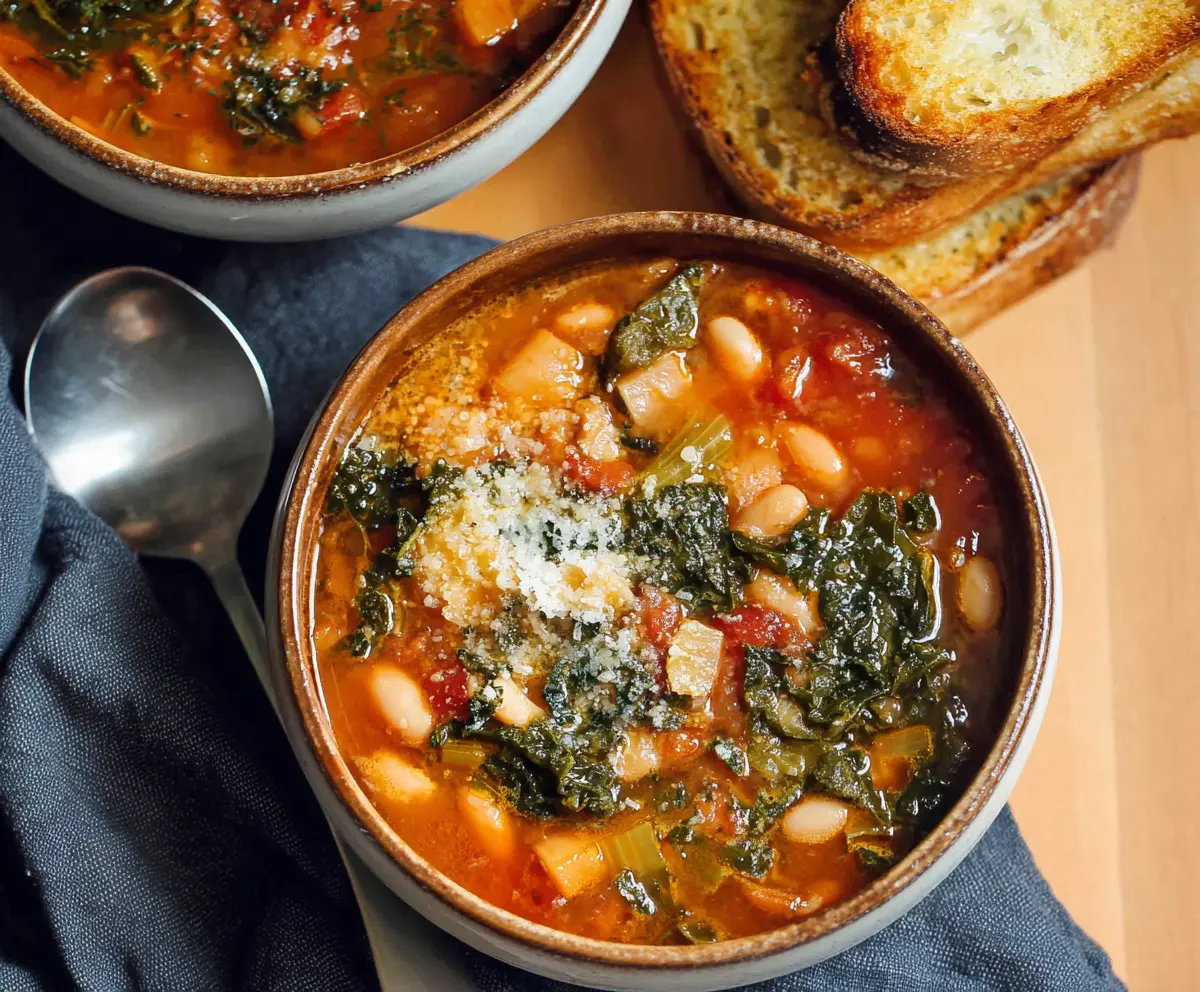 Enjoy your classic hearty Tuscan Ribollita soup with toasted bread on the side! It’s warming, filling, and perfect for a chilly day.